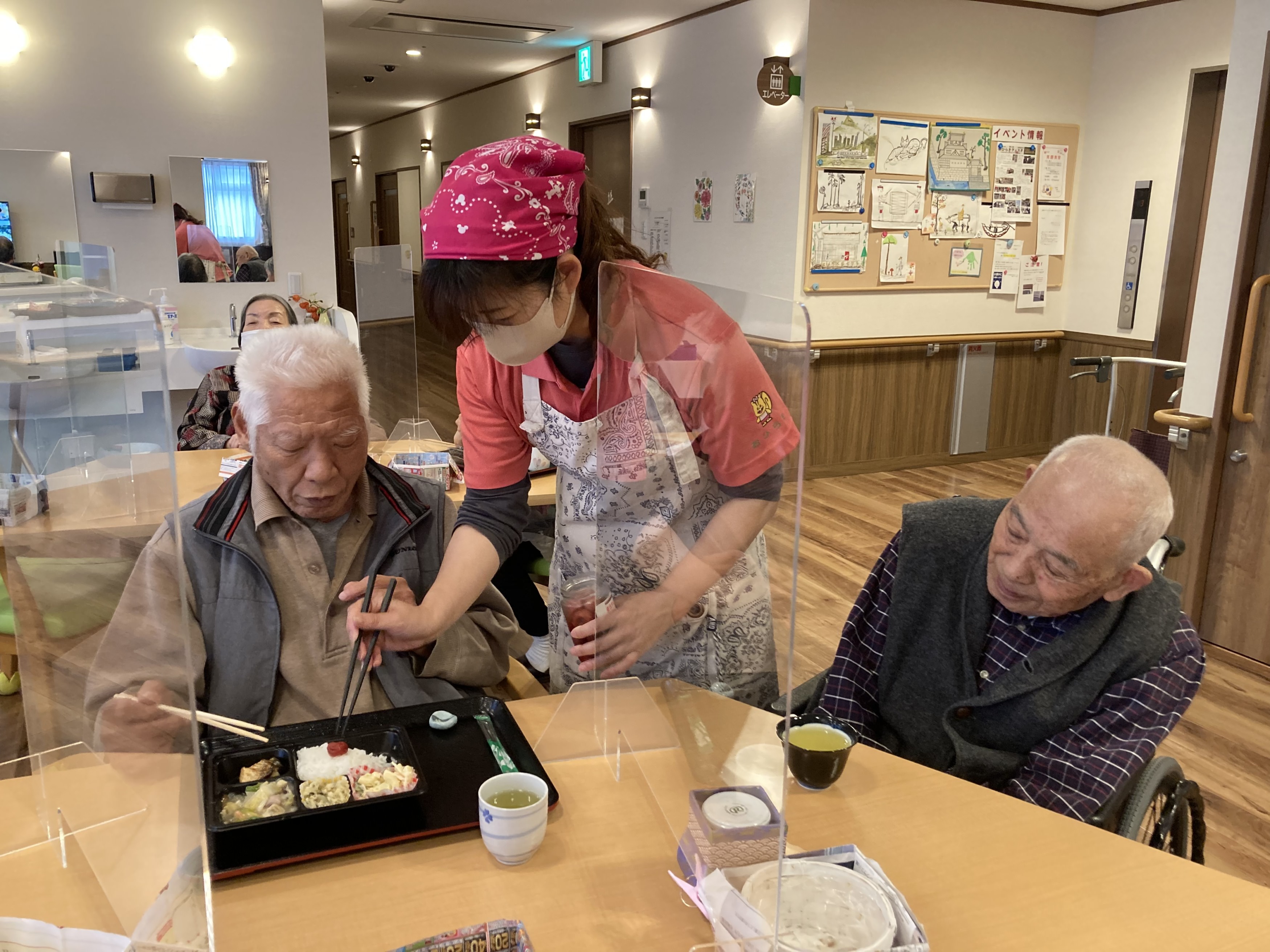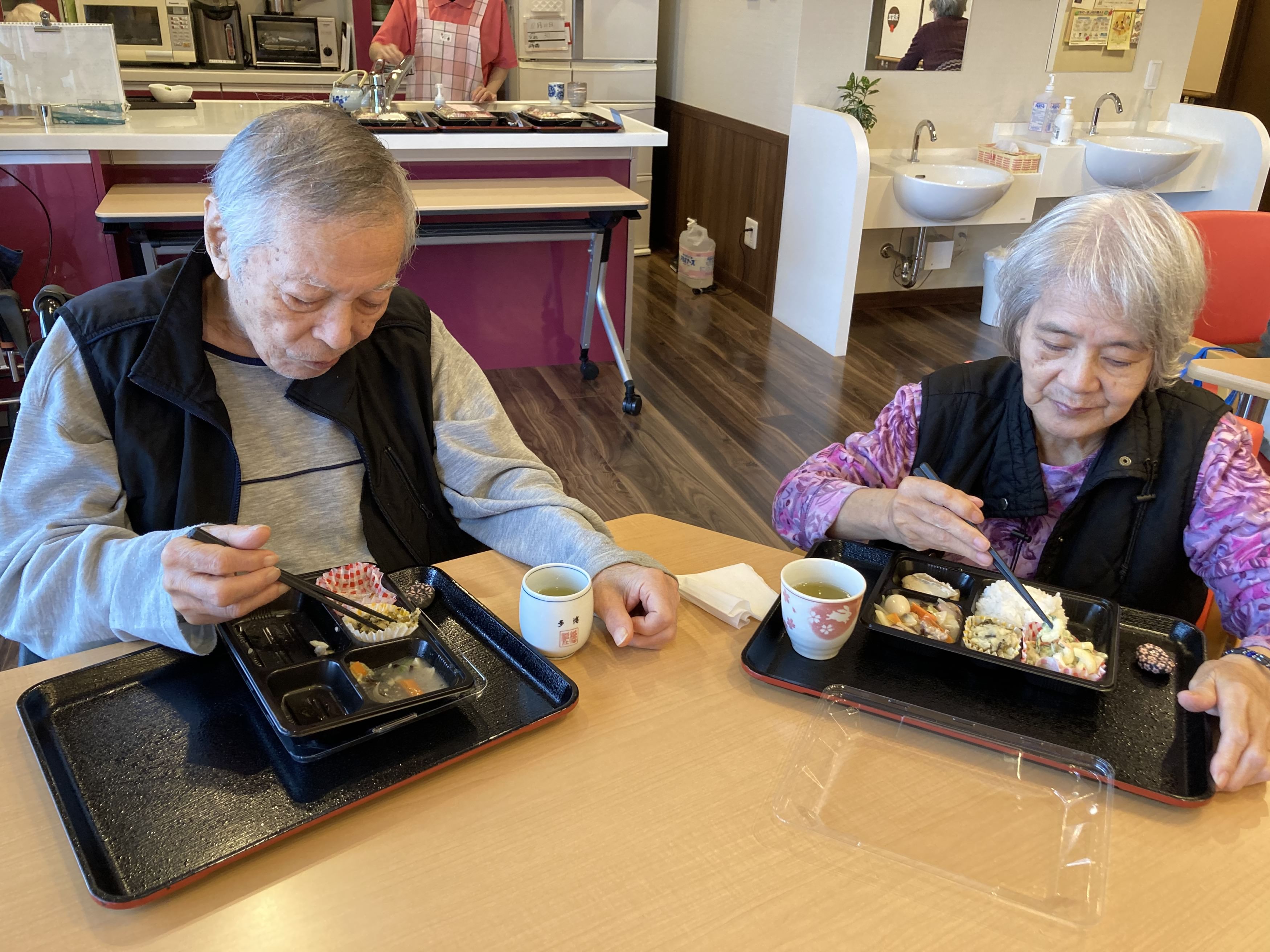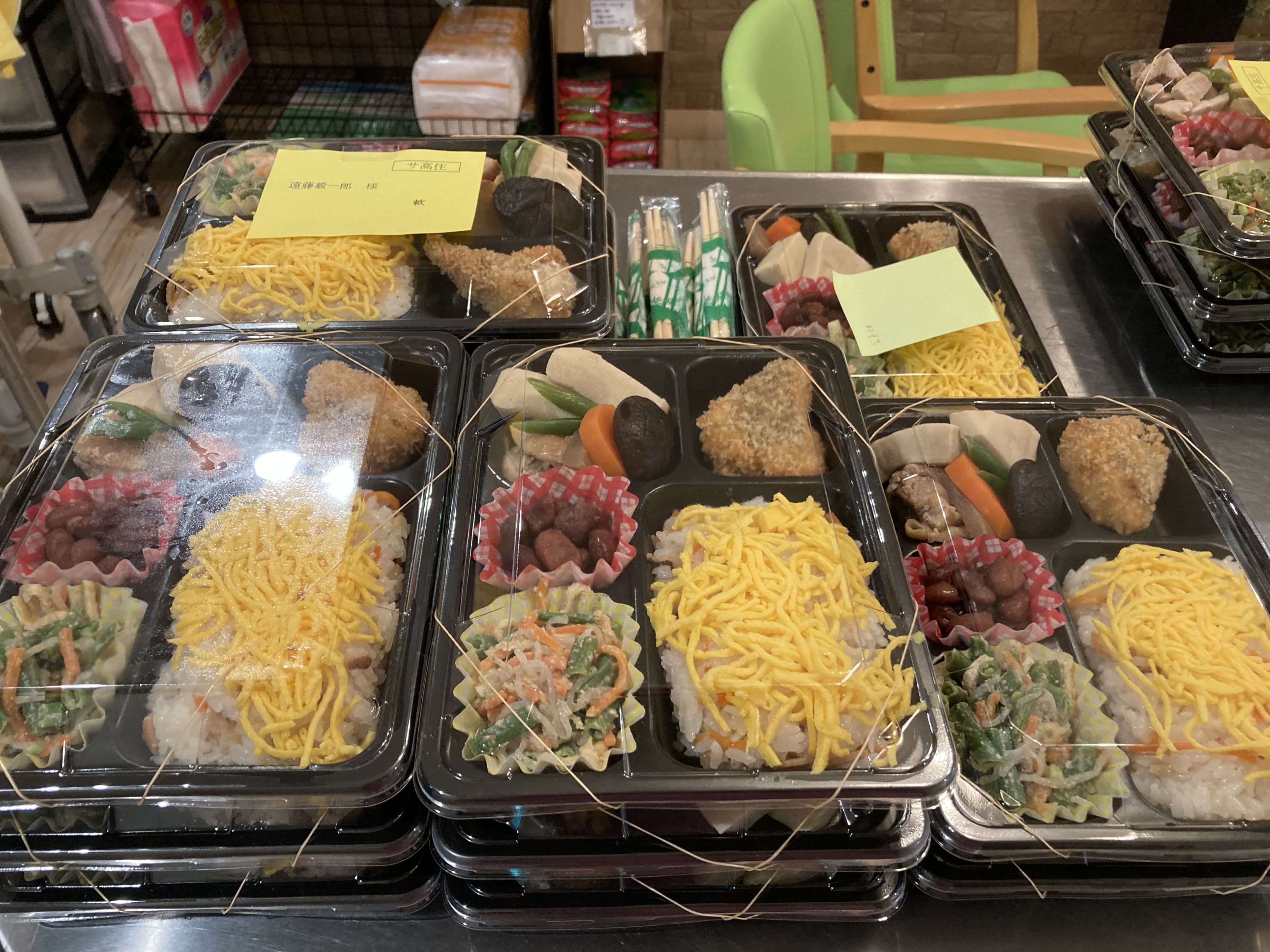11月23日は勤労感謝の日でした。 この日は、365日常に稼働している厨房さんに感謝の意を込めて 一人以外全員お休みにして、先日グリーンコープで立ち上がった「みんなのキッチンふくつ」のお弁当を昼夜頼みました