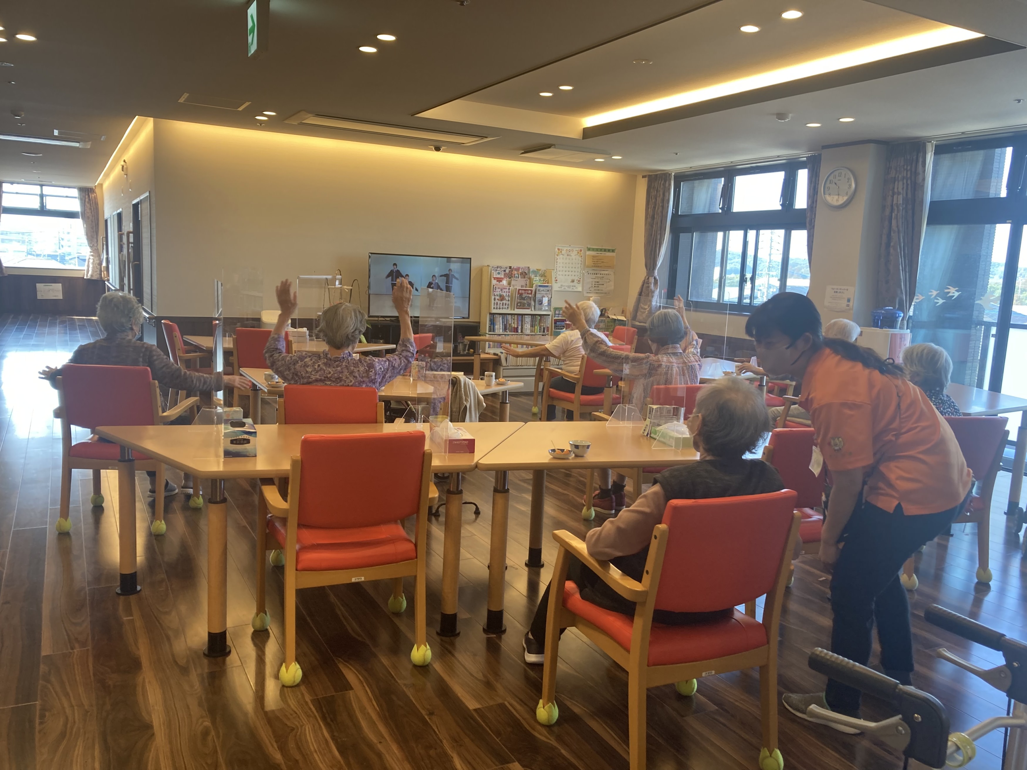 サービス付き高齢者向け住宅おひらき和では、毎朝10時に1階と3階でラジオ体操を行っています。これは、2020年4月から1日も欠かさず続けています。その時にお部屋の窓を開け換気をします。 3階の方々は入居者様同士が、選んだ体操をYouTubeで流しています