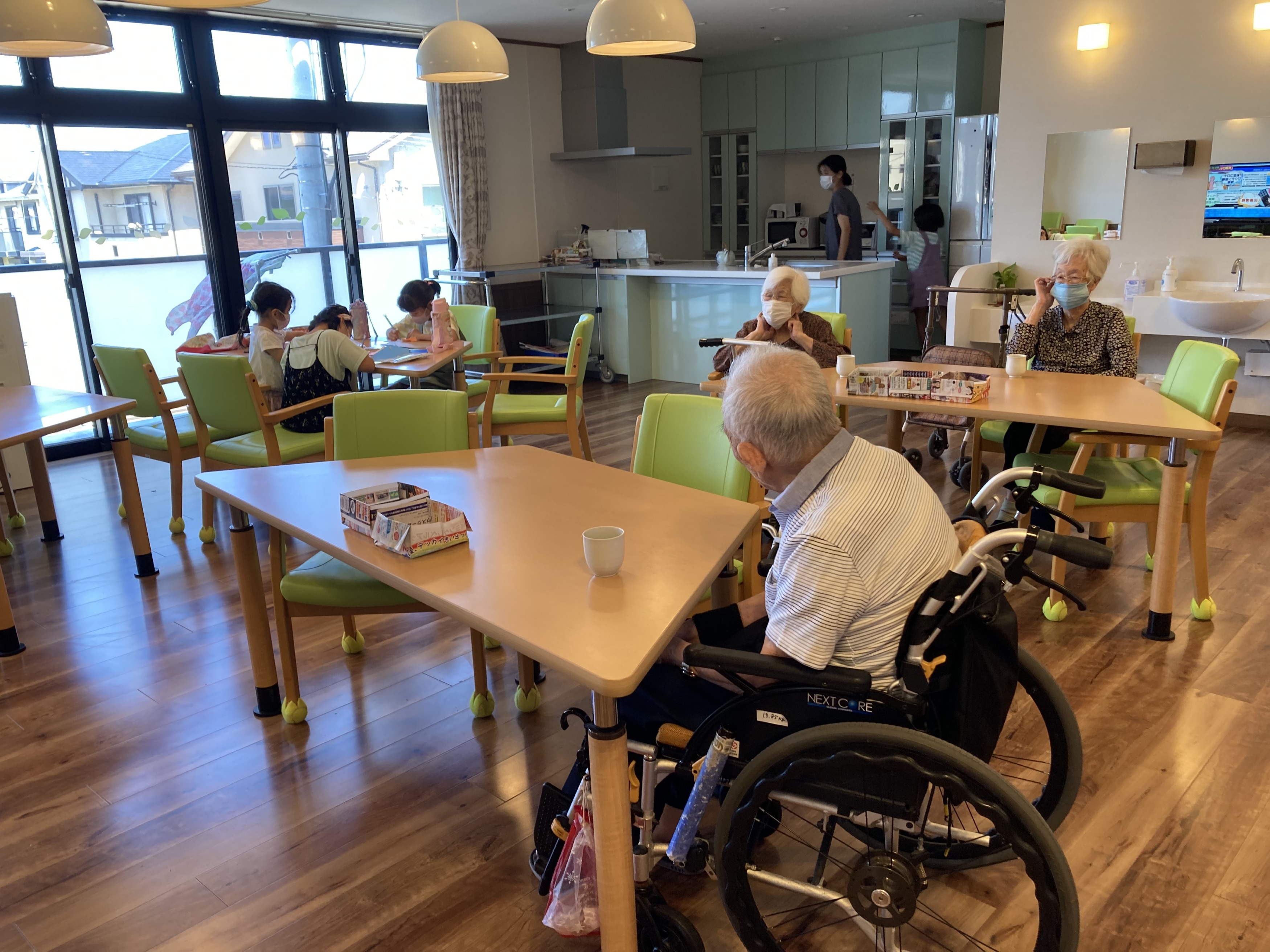 入居者様もニコニコ。お昼ご飯前のほのぼのとした時間でした