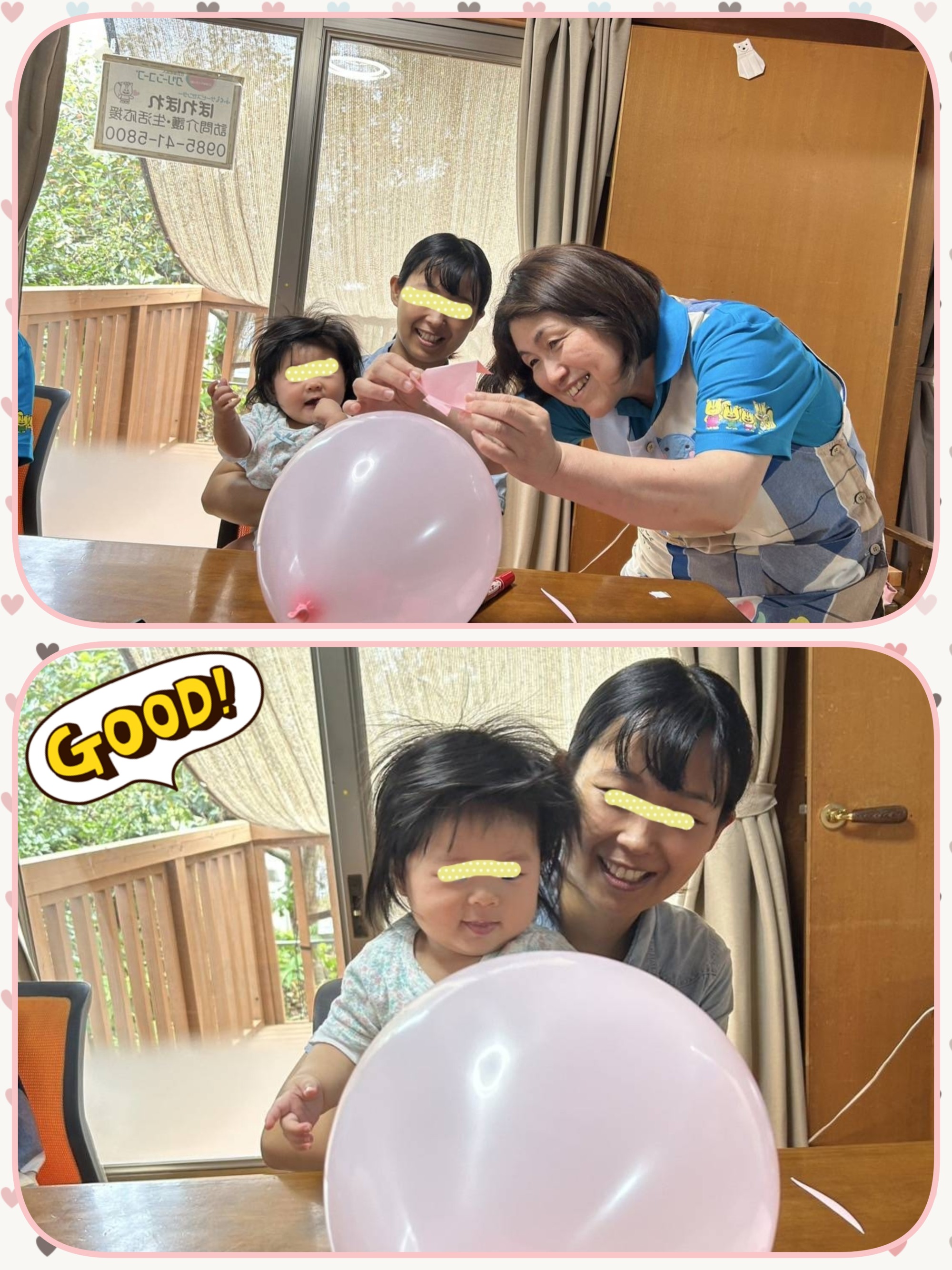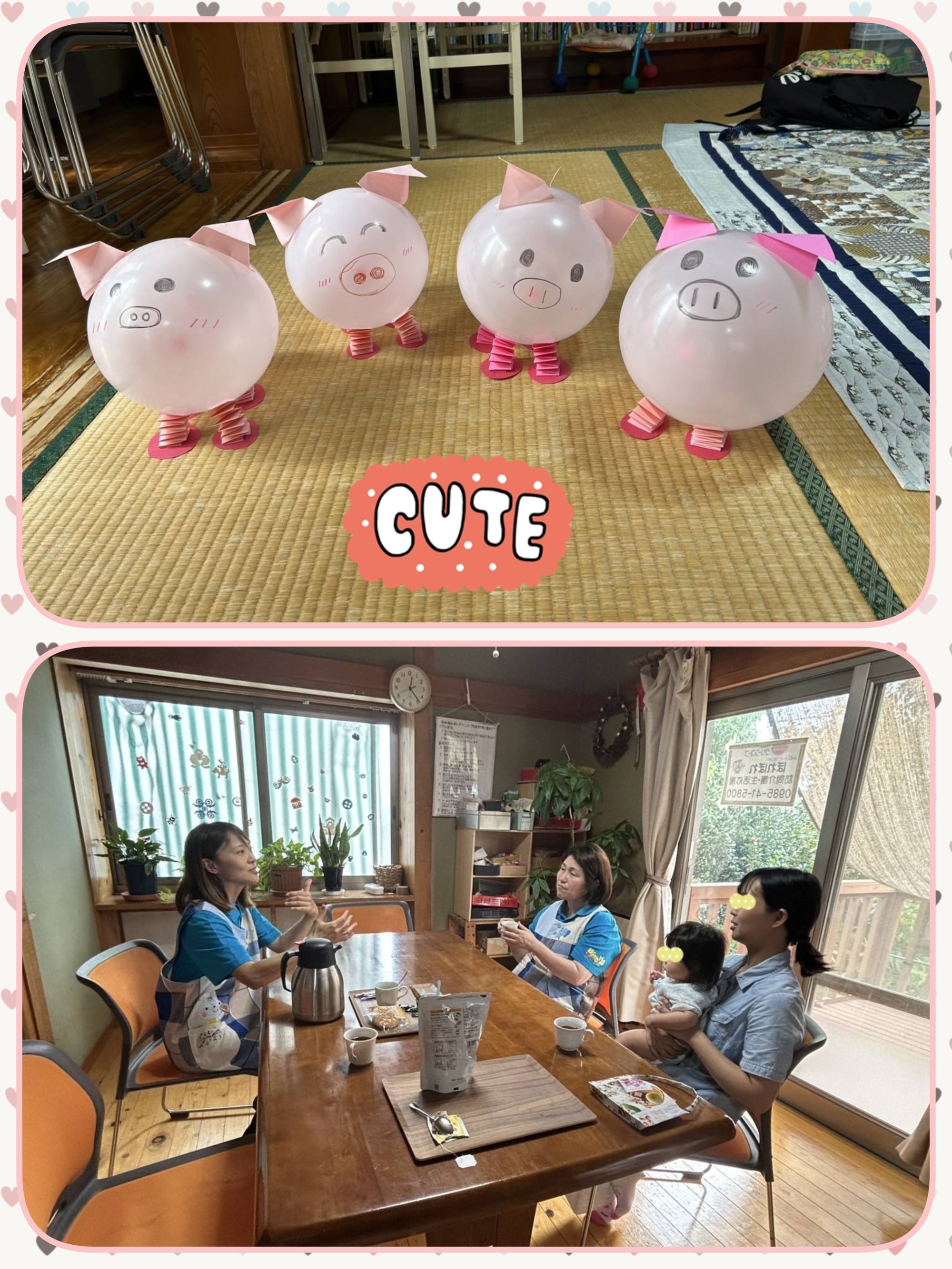 ふうせん遊びは赤ちゃんにはまだちょっと早かったですがスタッフもいっしょにかわいいぶたさんが出来上がりました~♡