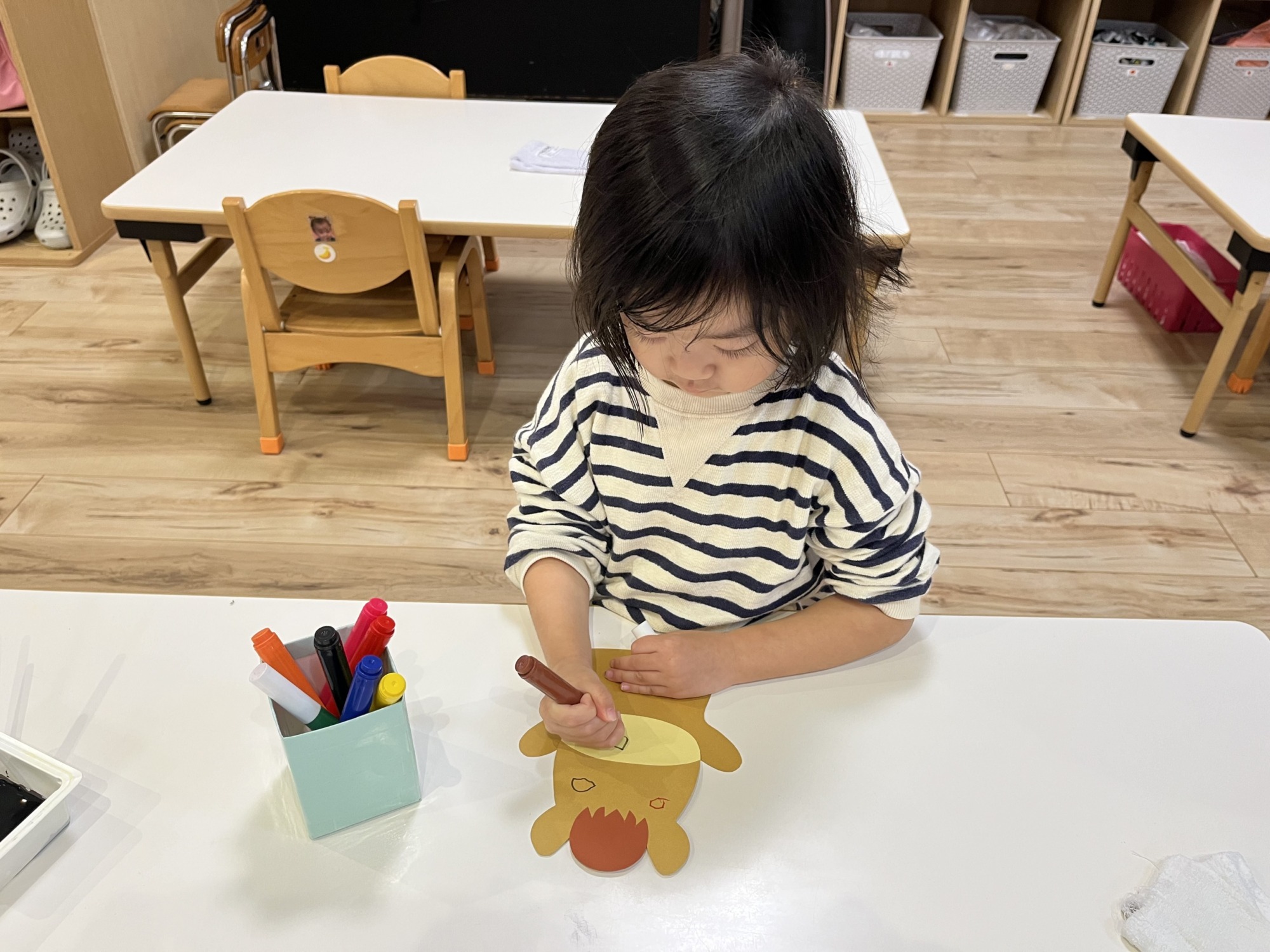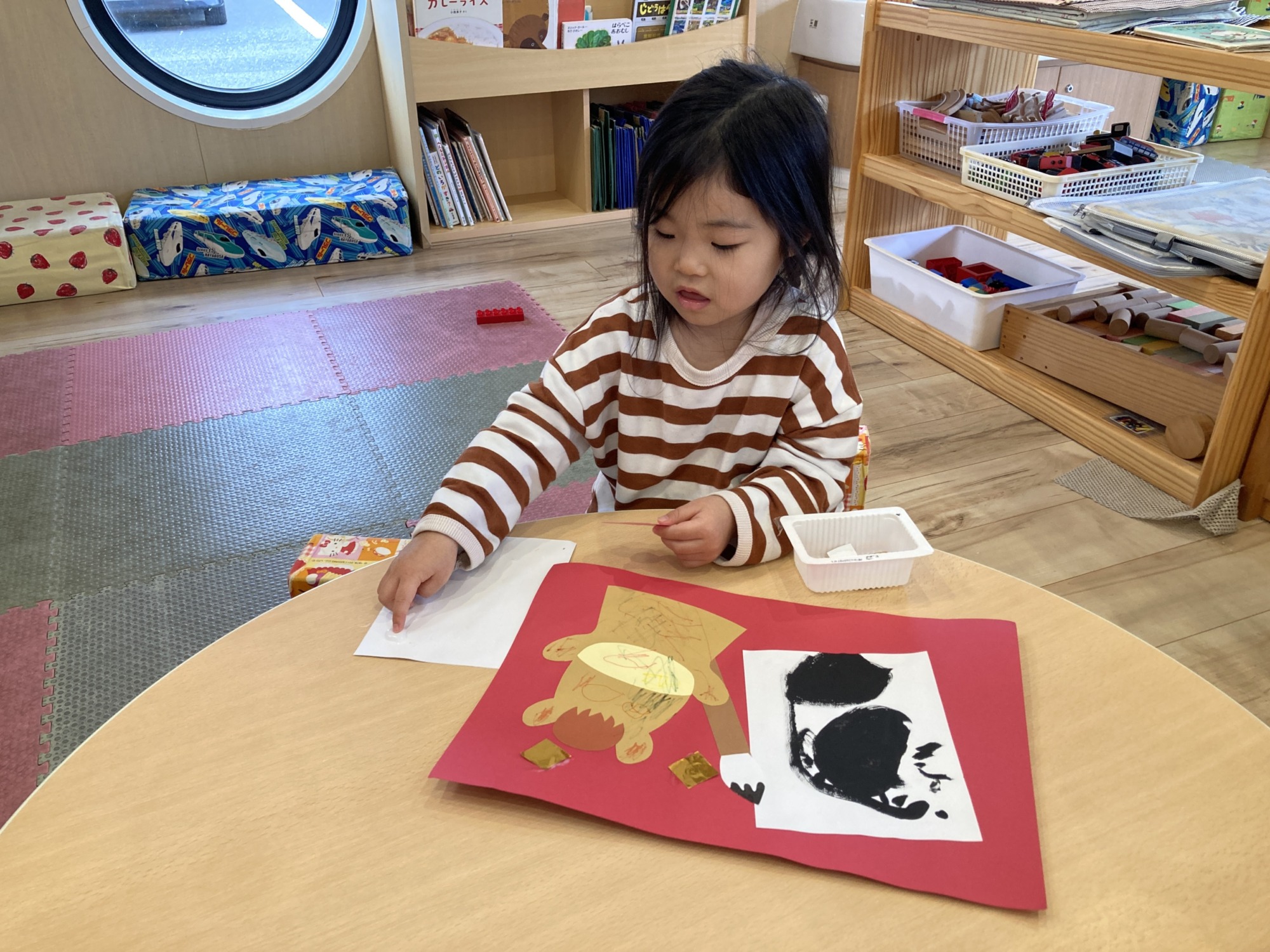 来年の干支は…「うまだよ〜」と伝えると嬉しそうに顔を描いていたこあらぐみさんです♡