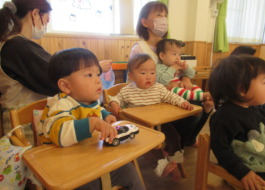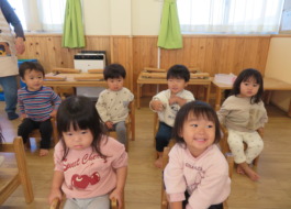 誕生会が始まり7月生まれの誕生児は、小さい子が多く少し緊張している様子が伝わりました。
