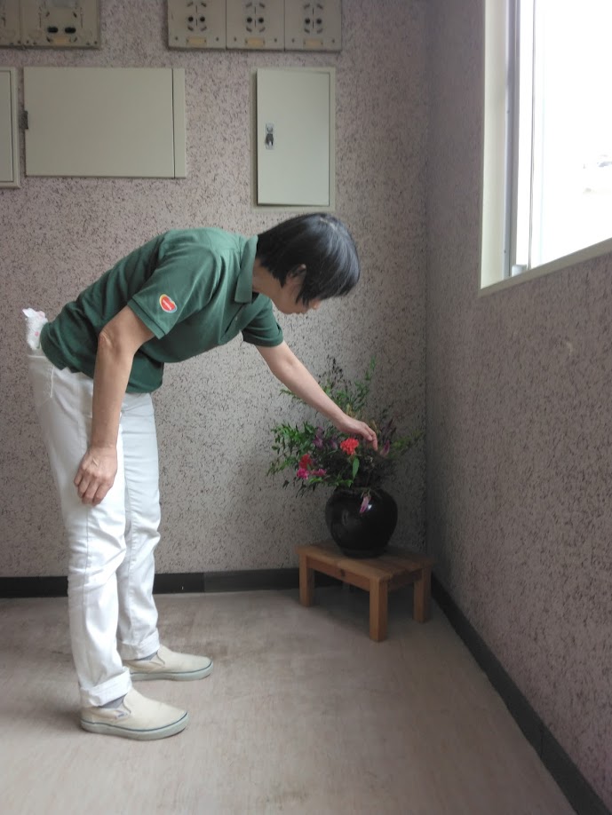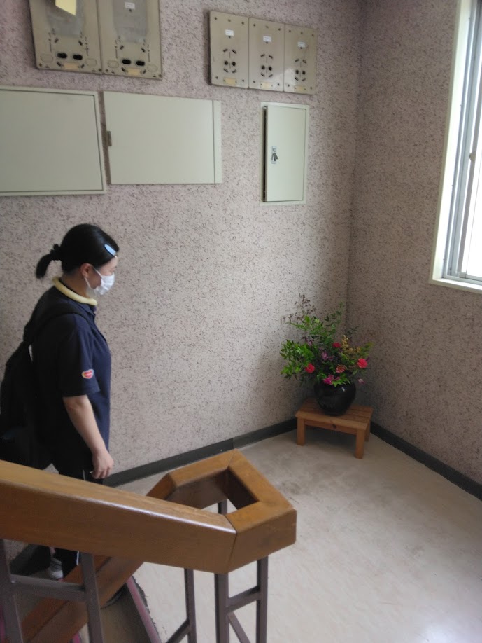 毎月、ワーカーさんが、殺風景な階段踊り場にお花を飾ってくださいます。