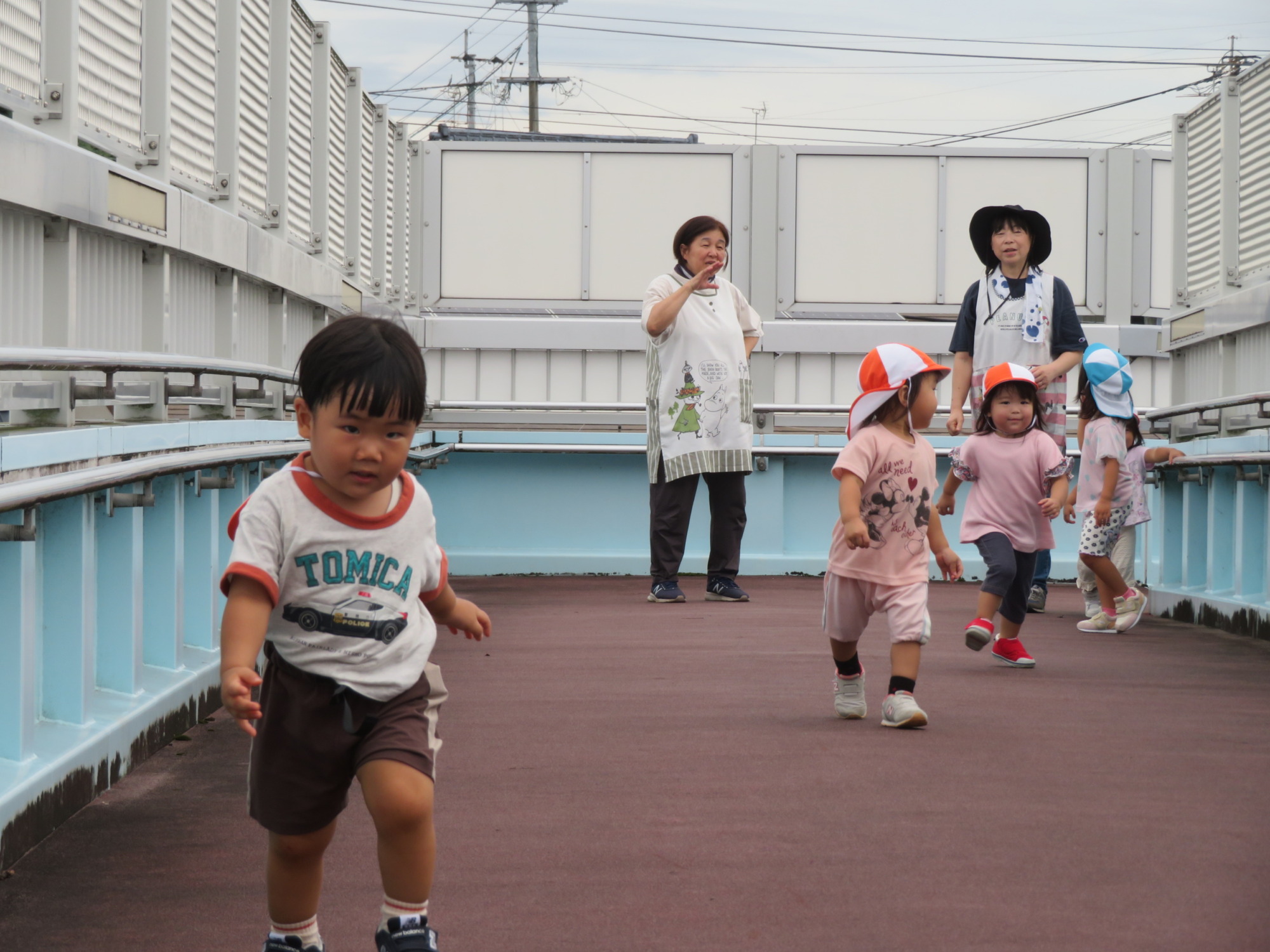 少しずつ誘導ロープを握って歩く練習をしているうさぎ組さん(^^♪