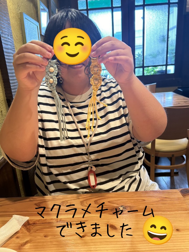 9月20日(土)に、移動支援(外出支援)のサポートにて、Jさんが、マクラメチャーム作りに挑戦。