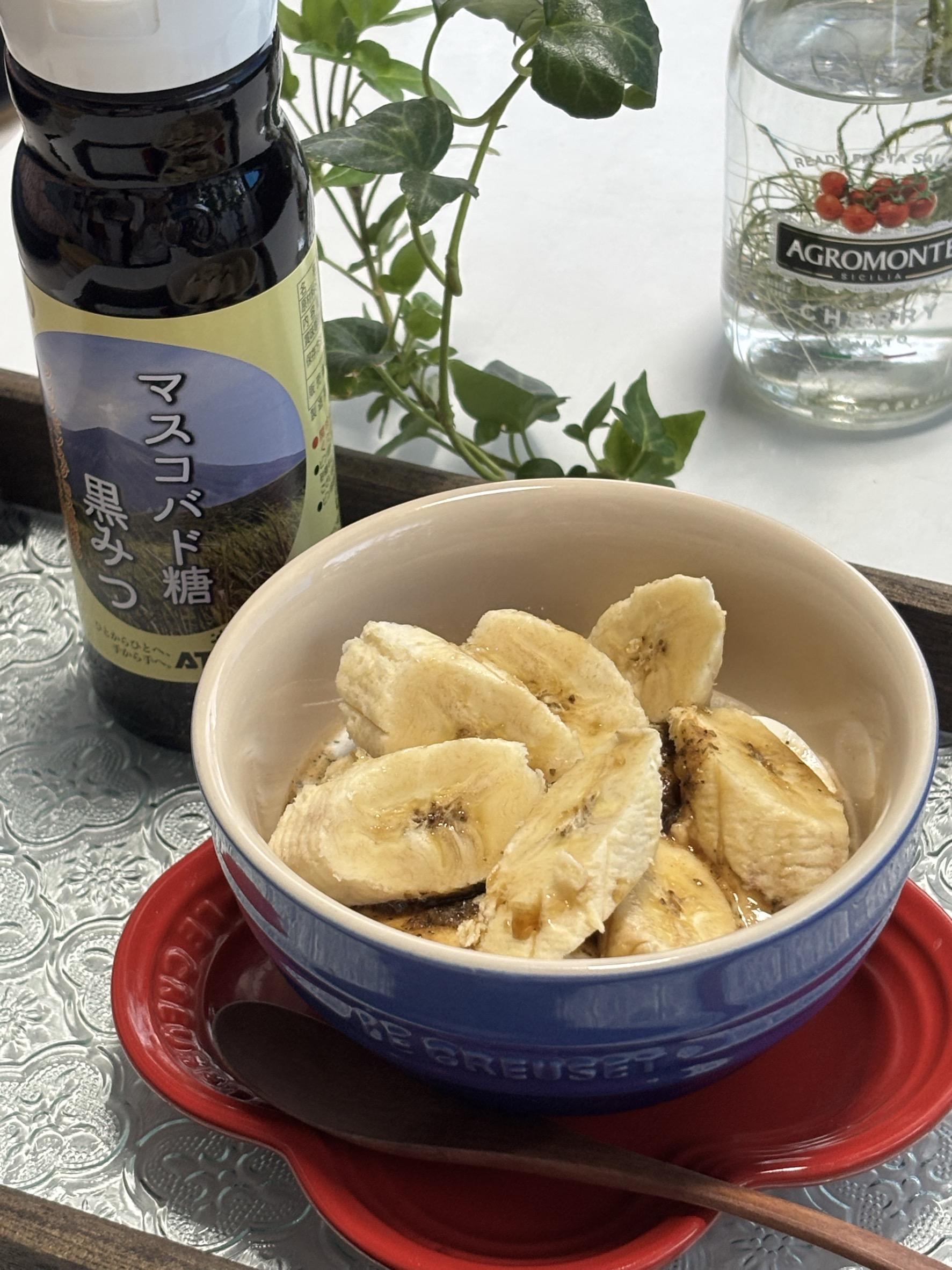 早速朝食のヨーグルトにトッピング!塩をかけているのに大好きなマスコバト糖を追い掛けして「いただきます♡」・・・グリーンコープのバナナの食感はもちもちねっとり感があって台湾バナナのような濃厚なお味。普段食べているバナナに比べて「元気が出そう!」なおいしさでした(*^^)v 皆さんもどうぞお試しください。