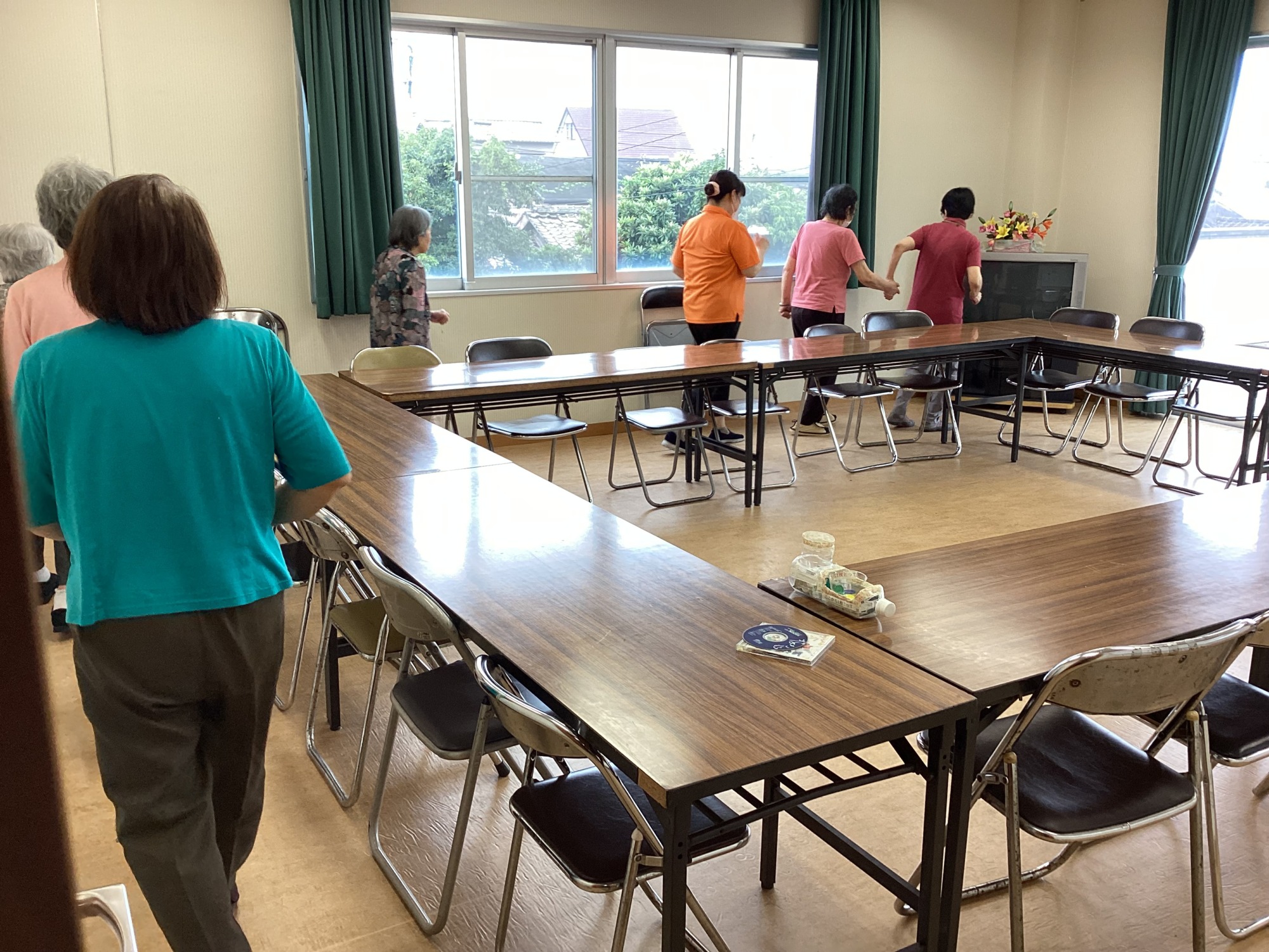 会議室をつかって皆さんと歩行訓練を実施しました。