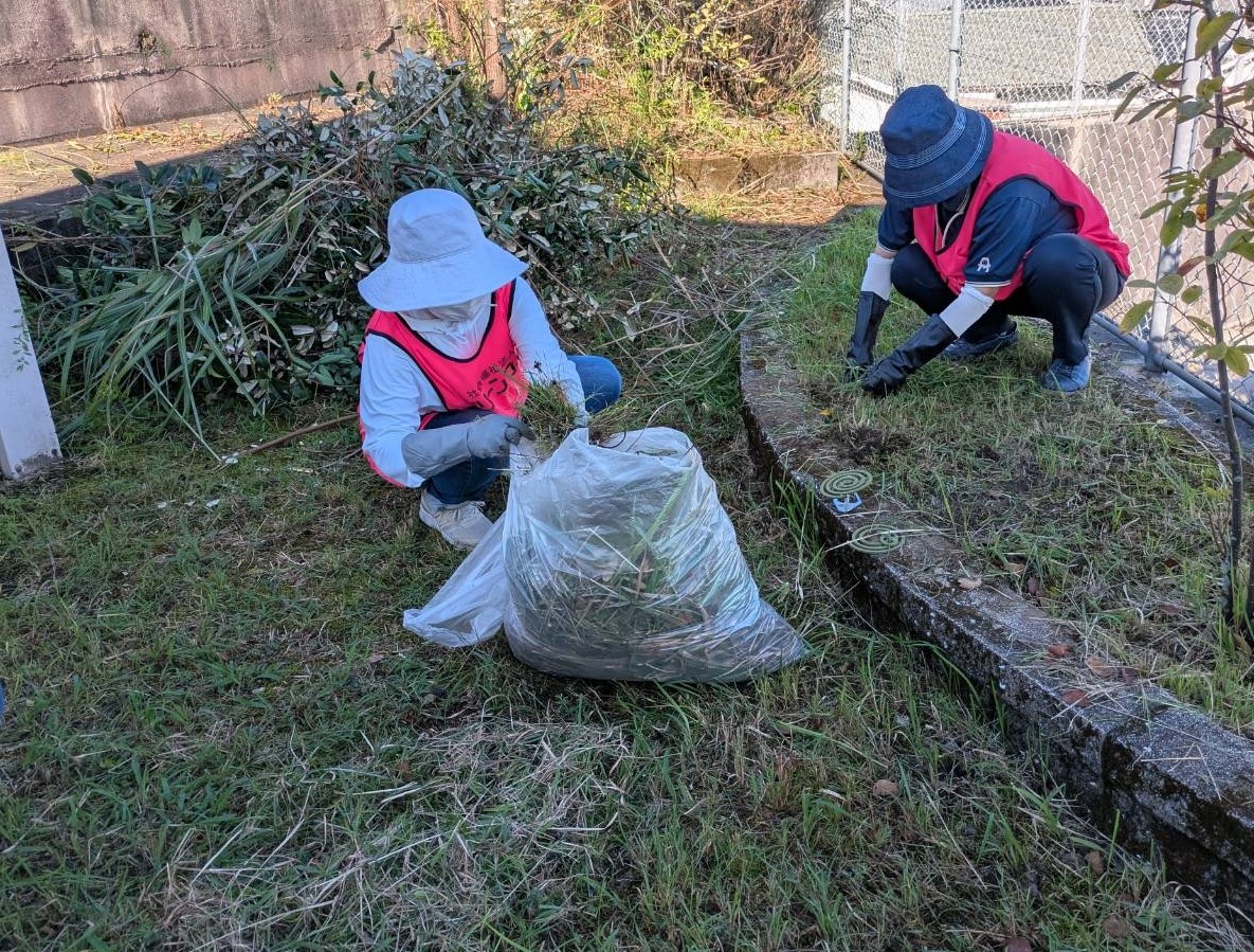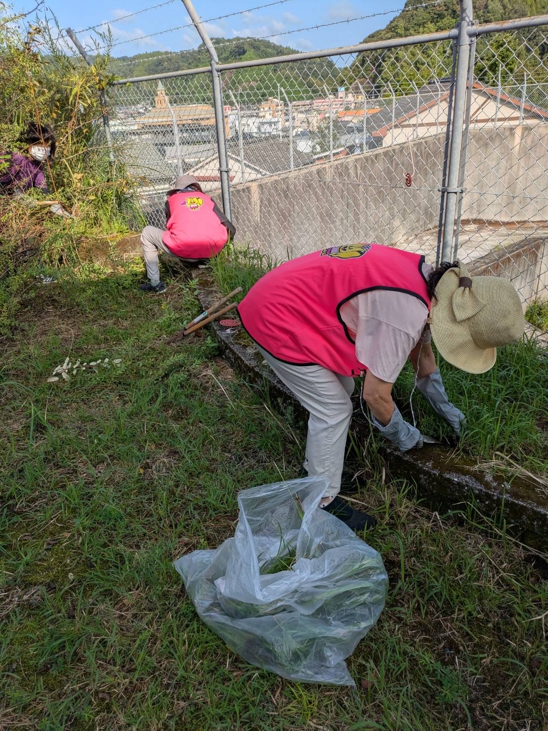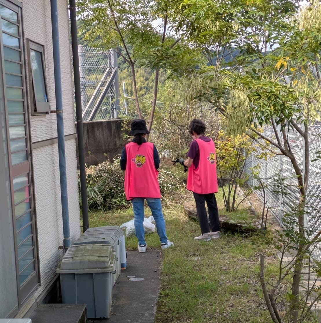 今回は事務所建物奥の草刈りをメインに行いましたが、伸びた草をみんな夢中になって抜いたので、