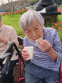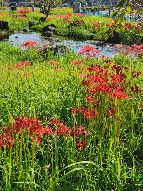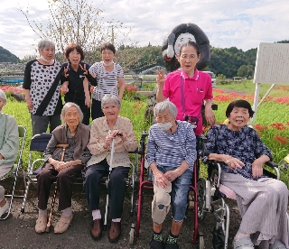 そこに咲き乱れている何百本物彼岸花が道路沿いに咲いていて、ご利用者も大変喜んでくださいました。
