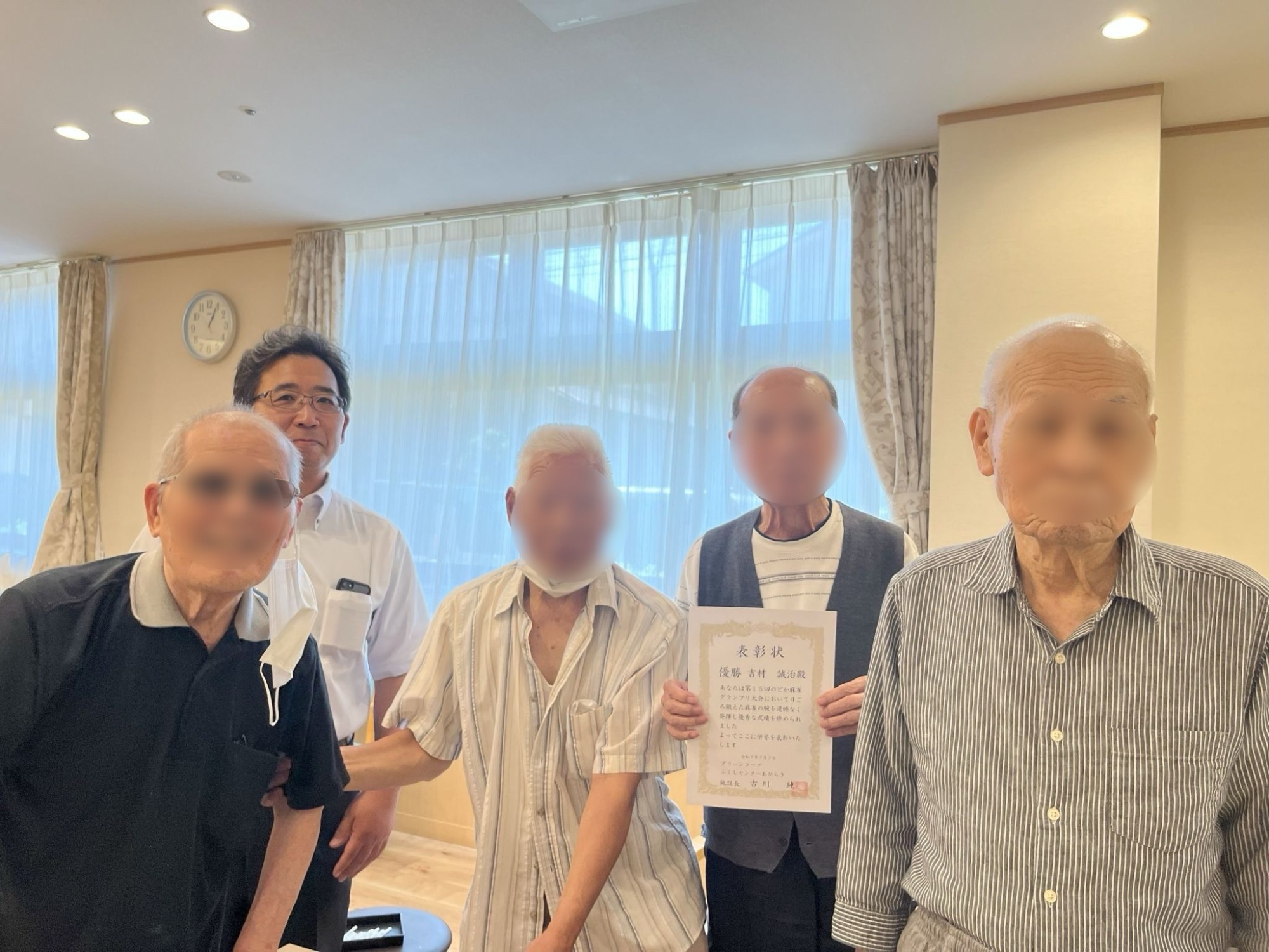 センター長より表彰状を贈られ、倶楽部メンバーで記念撮影📸