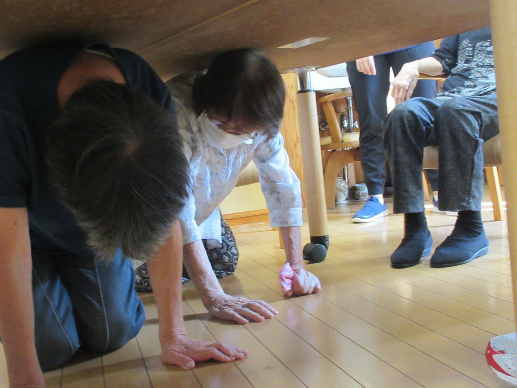 地震の時、テーブルの下にもぐることが出来るのか、確認と挑戦をしてみました。