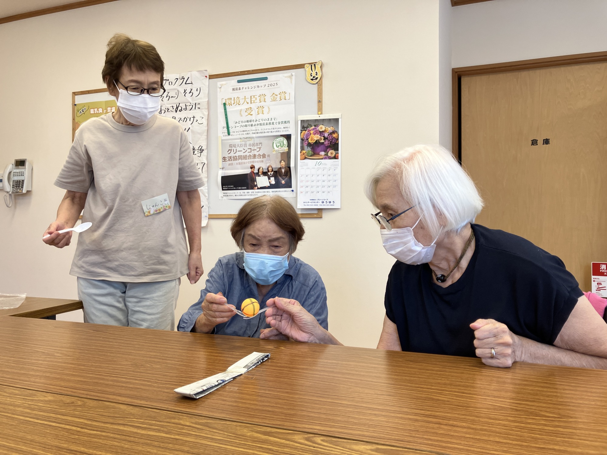 体操やミニ競技をしていただいたあとは、お茶とお菓子でほっこりしていただきました。