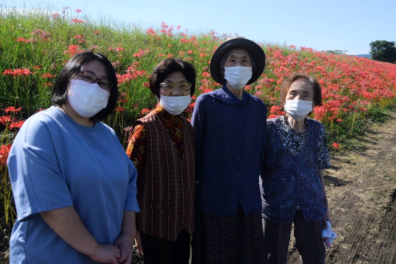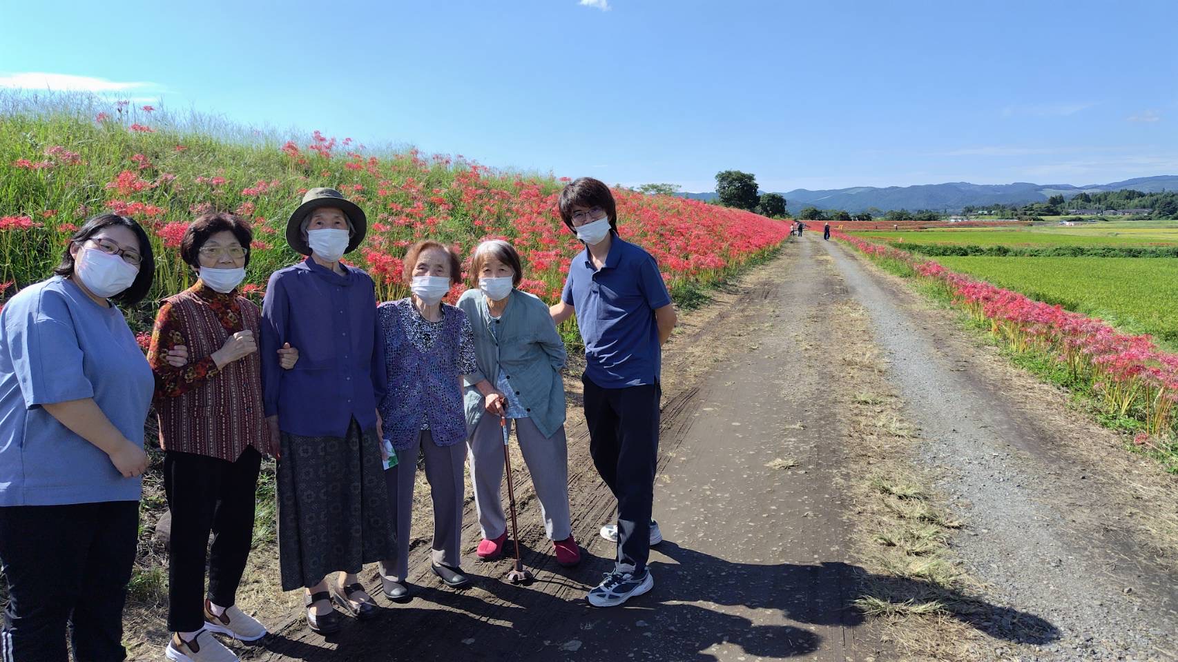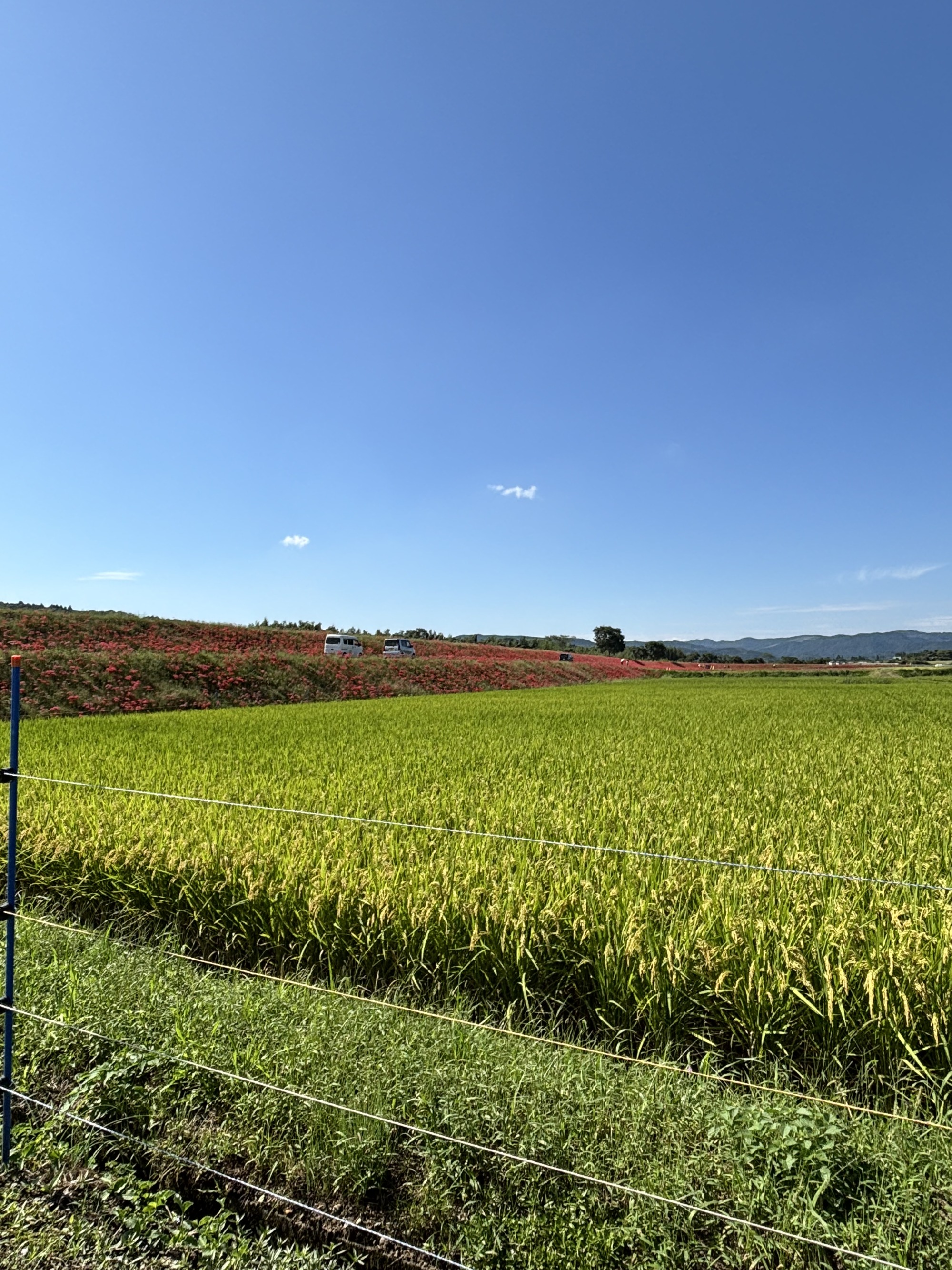 ちょうど稲刈り前で田んぼの向こうに赤く広がる彼岸花の景色にみなさん声をあげていました。