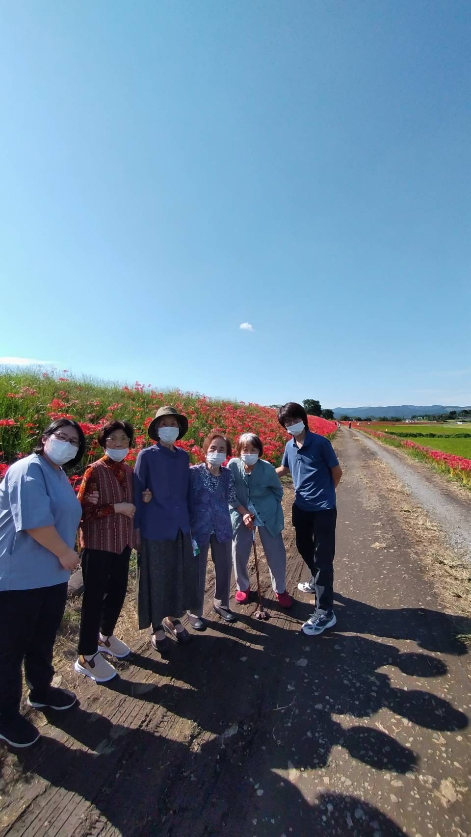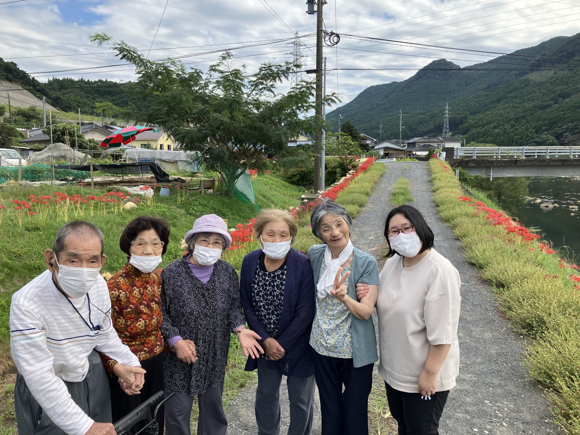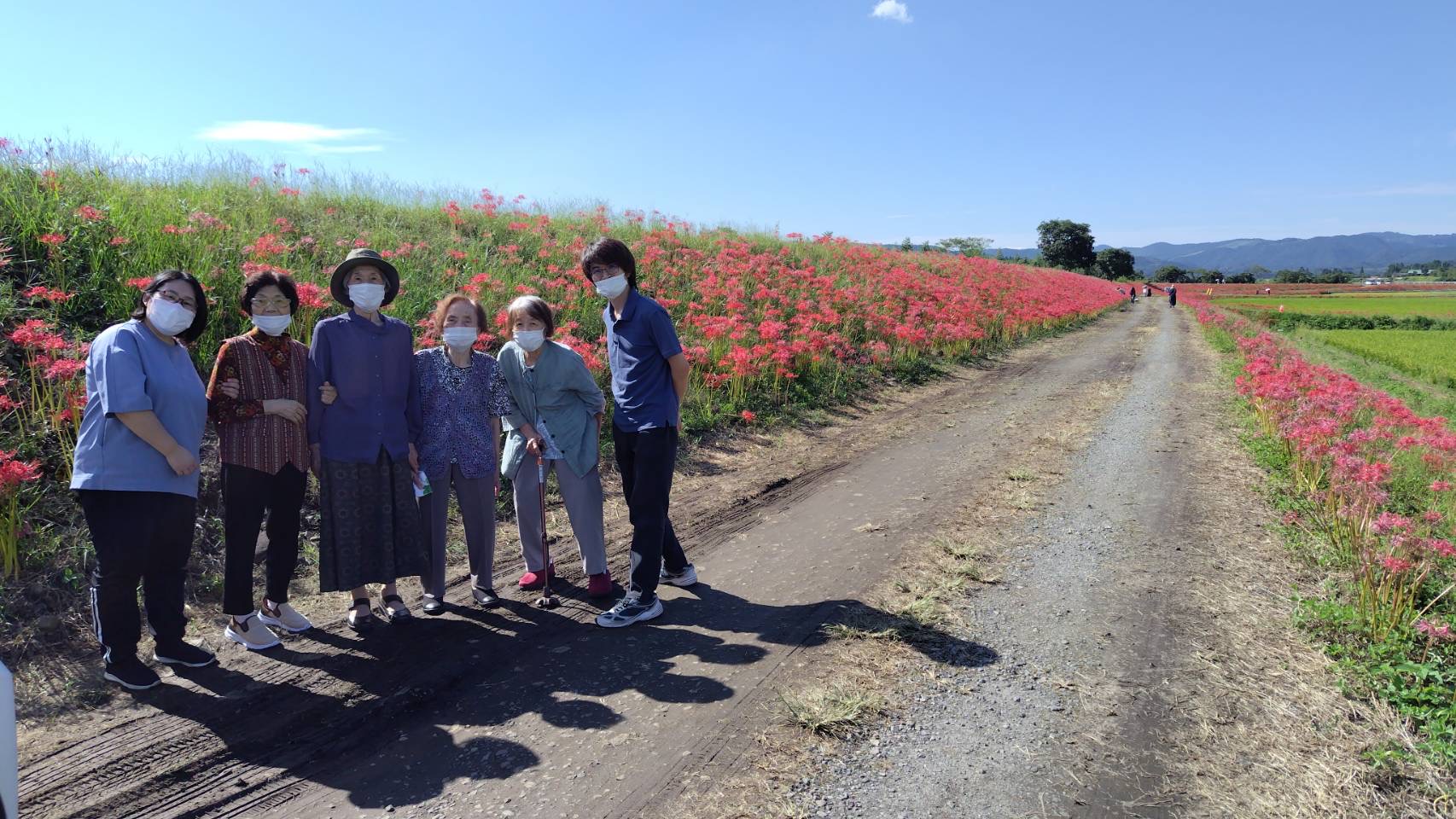 ちょうど稲刈り前で田んぼの向こうに赤く広がる彼岸花の景色にみなさん声をあげていました。
