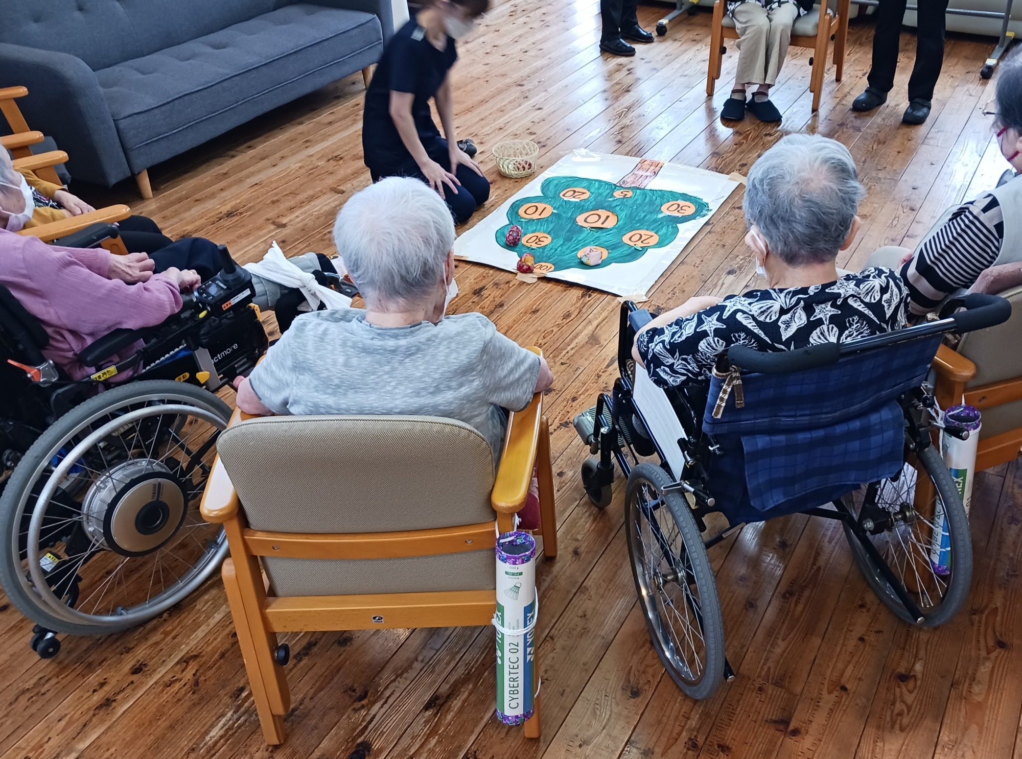 今日はお手玉を投げて点数を競うゲームです(⌒∇⌒)