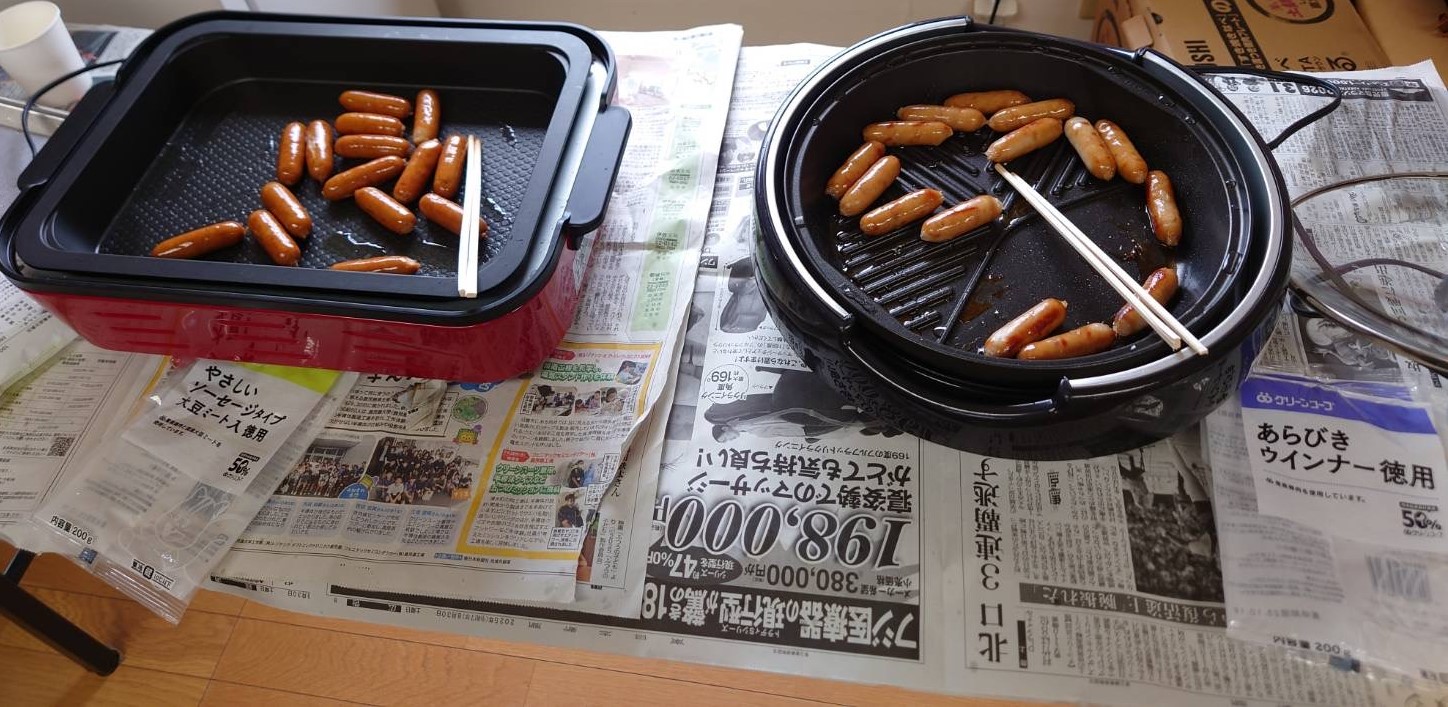 ウィンナーは、あらびきウインナー・やさしいあらびきウインナー・ソーセージタイプ大豆ミート入りの3種類を食べ比べてみました。