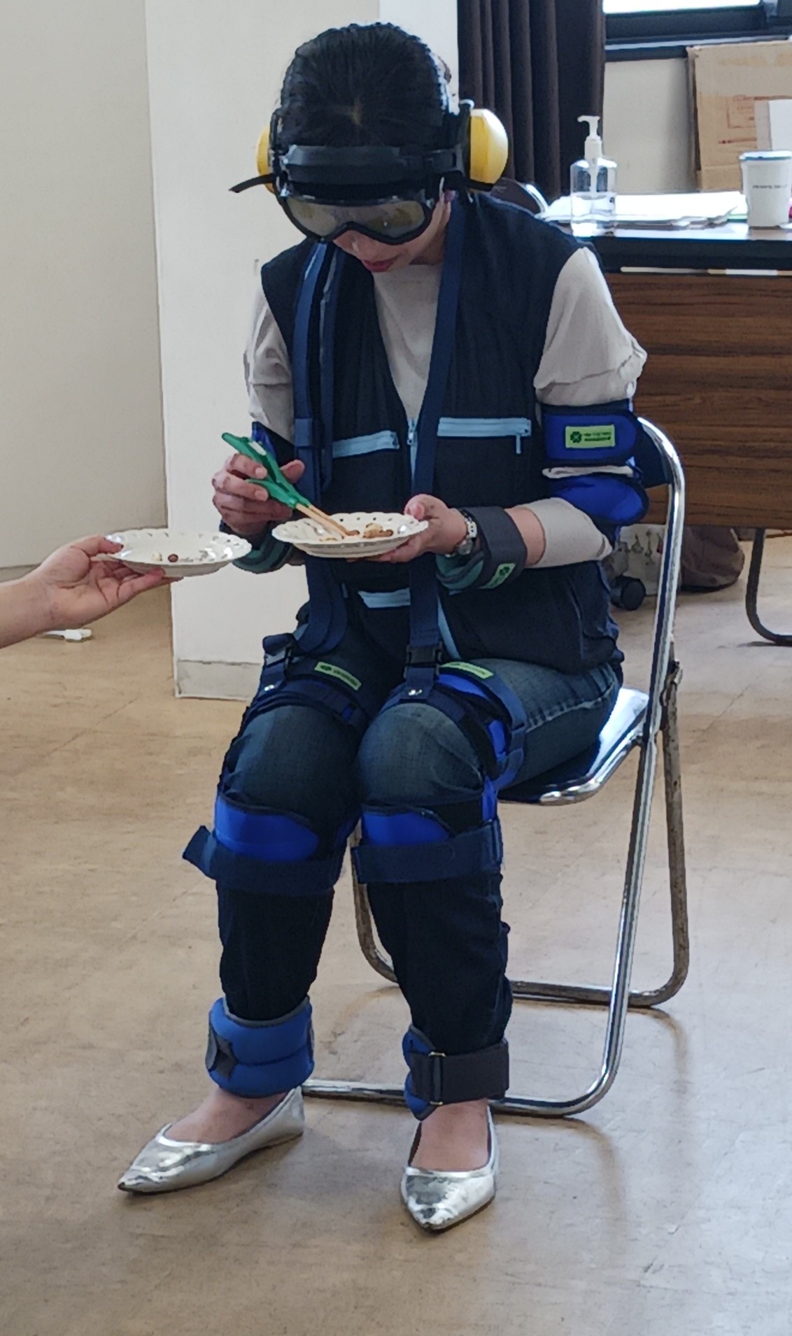 高齢者擬似体験の目的は、高齢者の身体機能低下や心理的な変化を具体的に体験し、高齢者の視点に立って理解を深める事です。