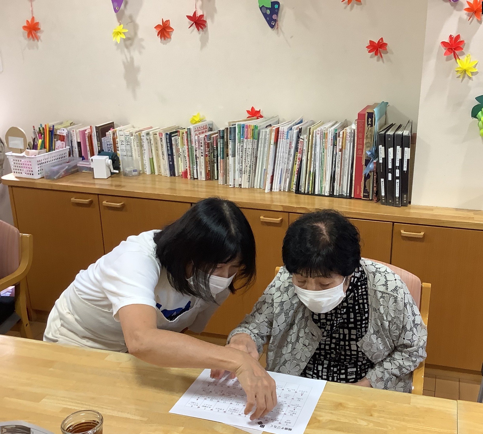 簡単な説明のあとデイルームでご利用者とともにレクや体操にも参加して過ごしていただきました。