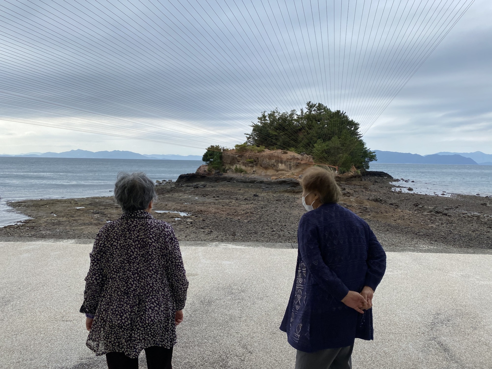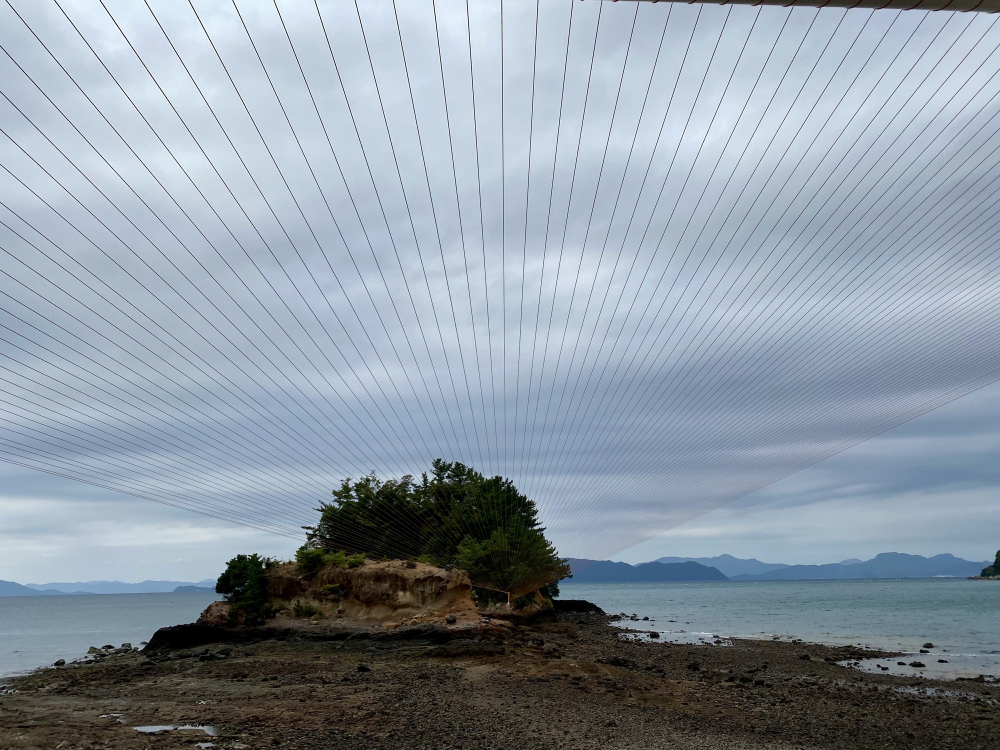 ピンと張りつめた糸が100本も連なり、島や海の方へと自然と目を向けられます。