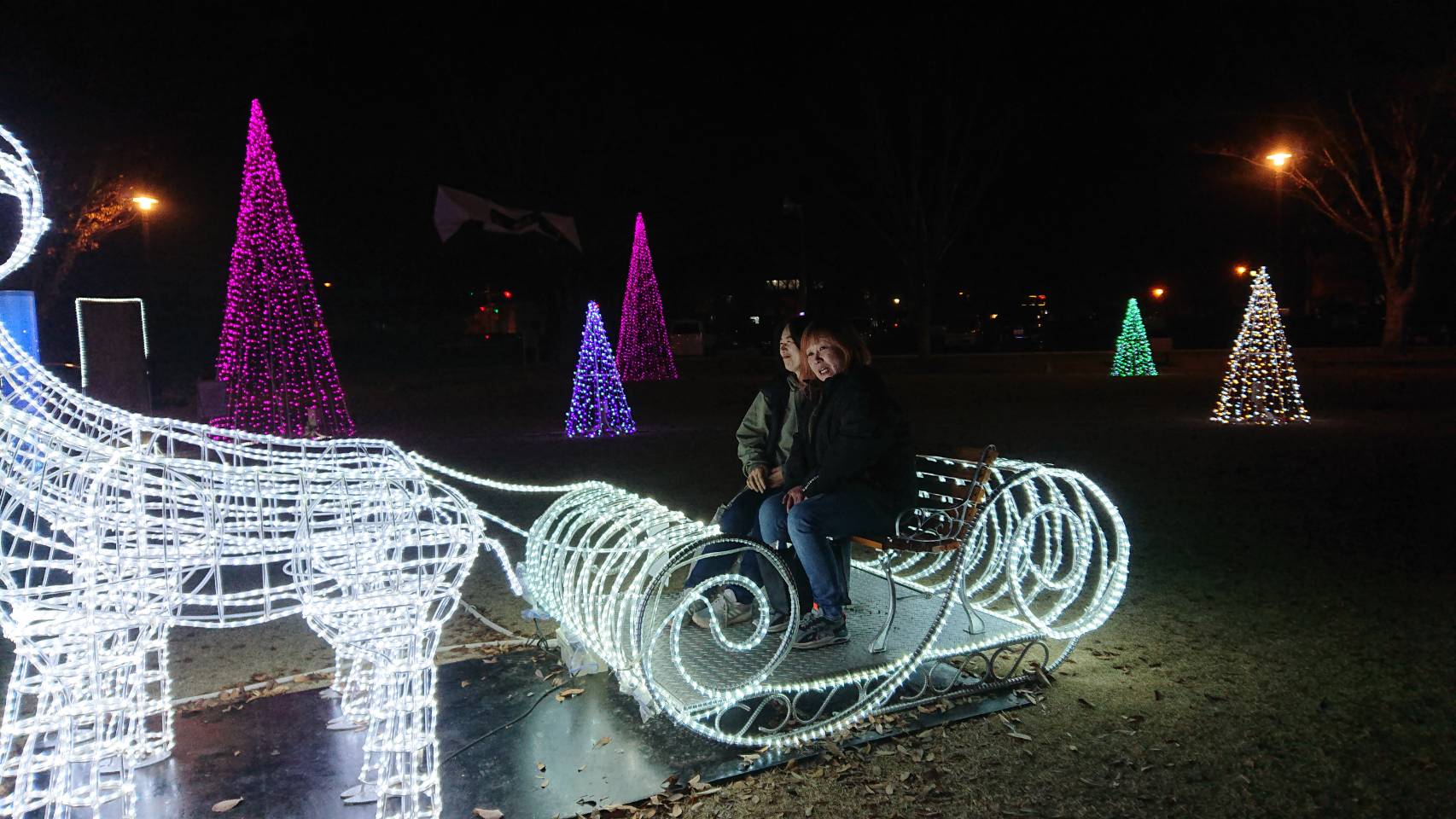 タイミングよく近くの広場でクリスマスイルミネーションがありました。