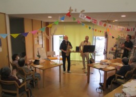とても大きなくす玉をお庭で盛大に割りました。見に来られたお客様も一緒に手を叩き感動されていました。