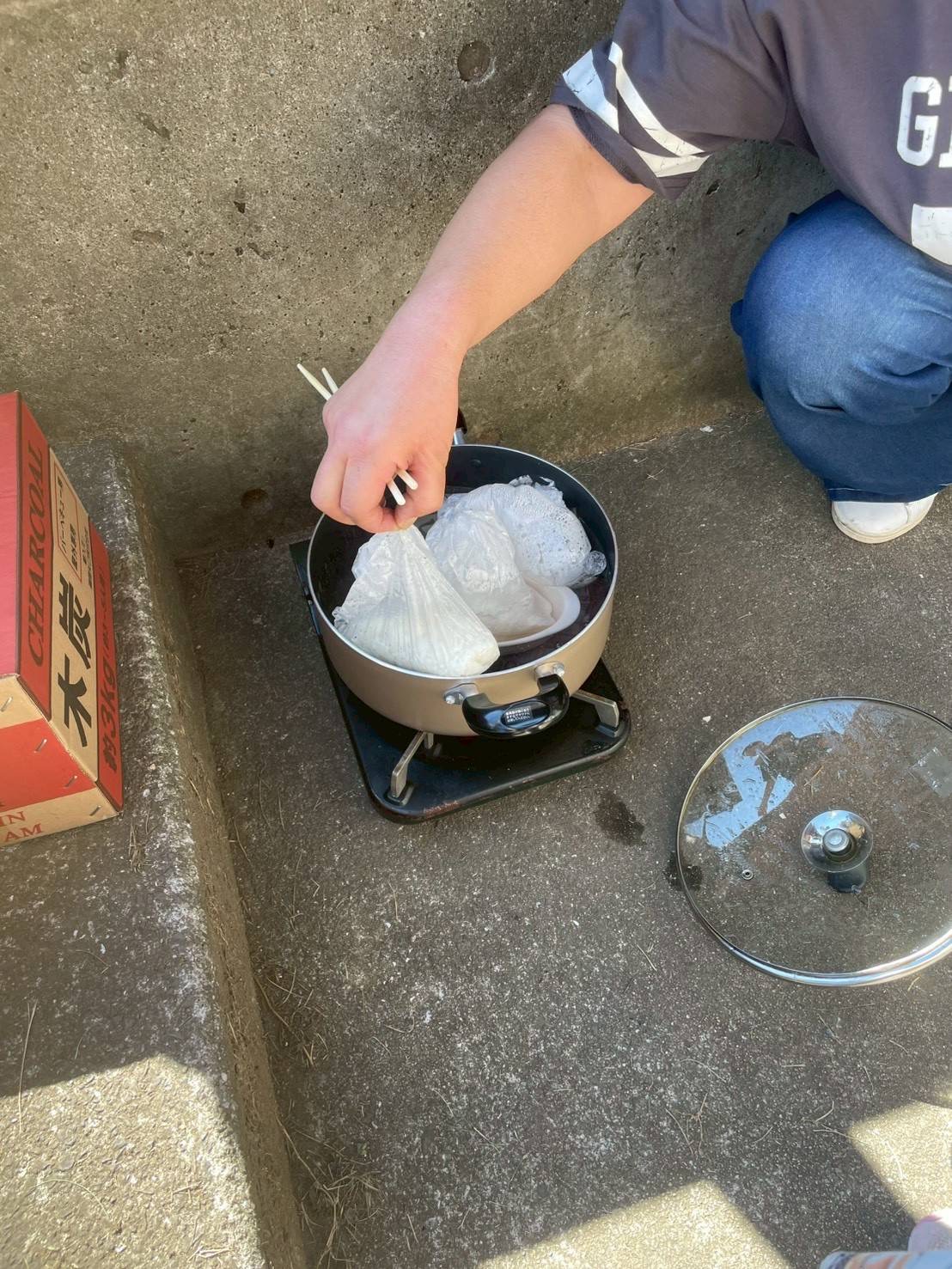 鍋にアイラップの袋が浸かる位の水を入れ25分炊き10分蒸らす