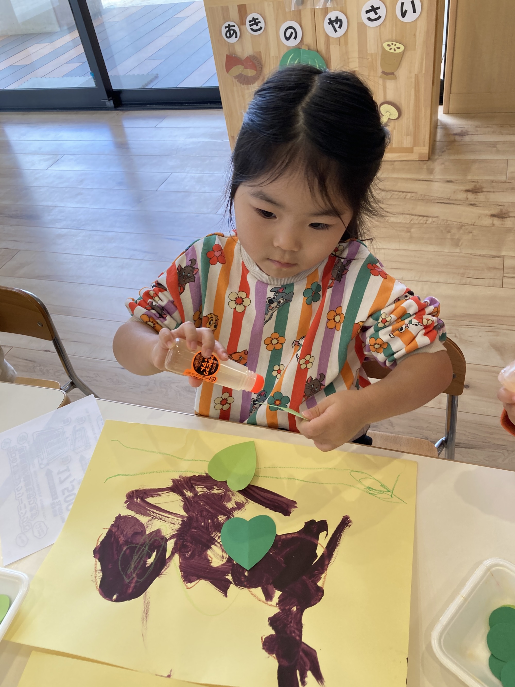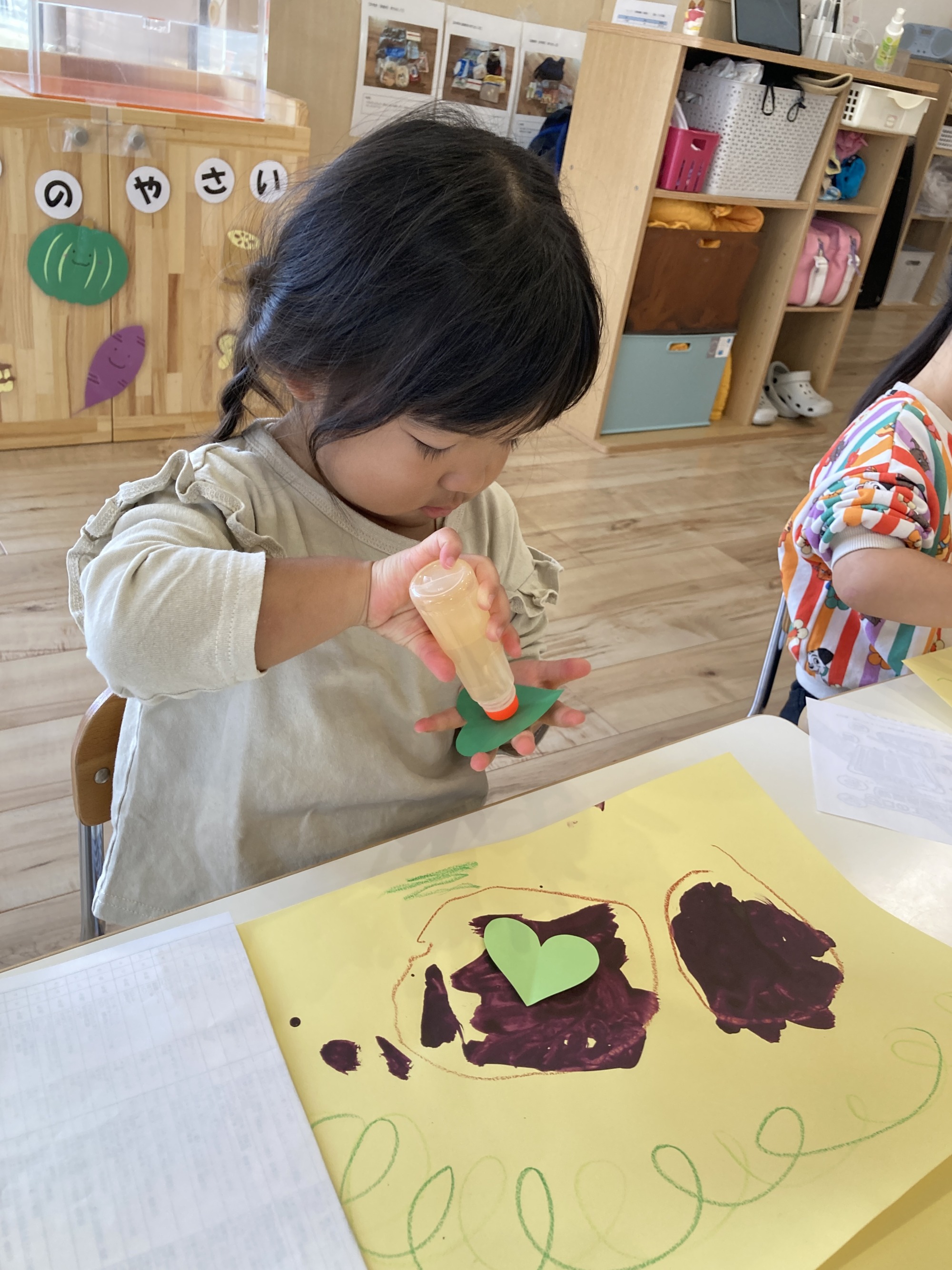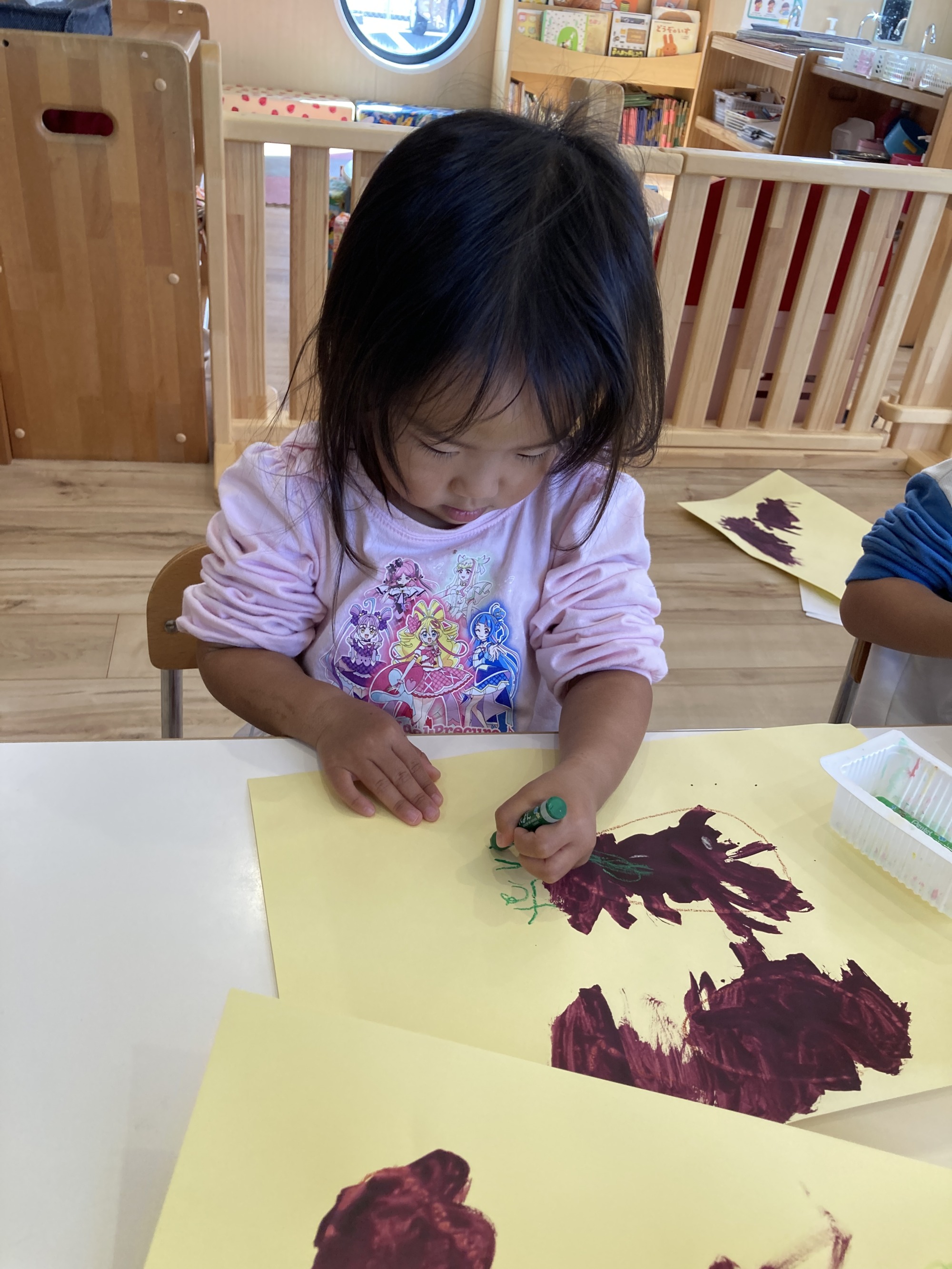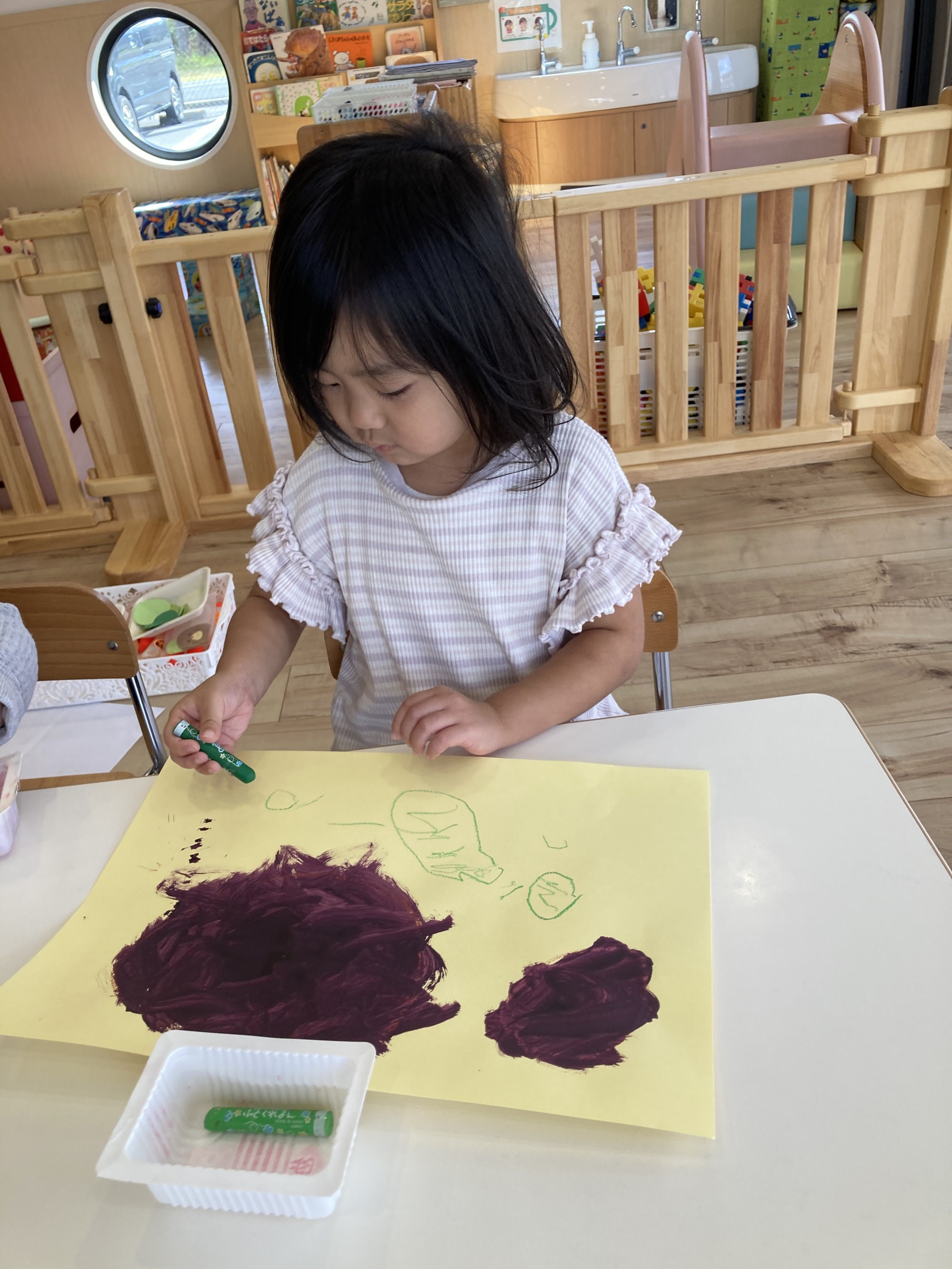 「大きいお芋〜‼︎」「可愛いの〜」と言いながらクレヨンでお芋を描いていましたよ(^^)