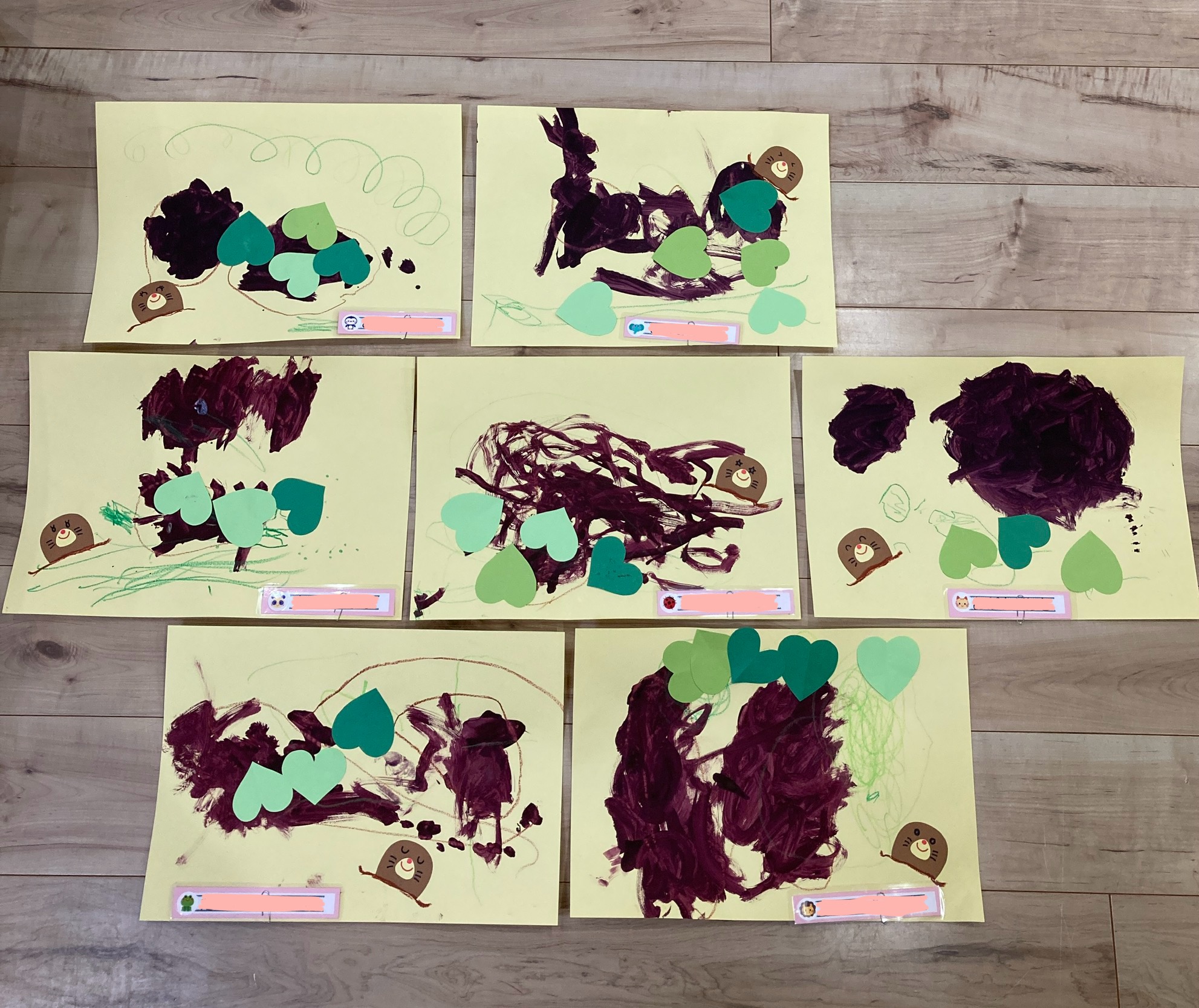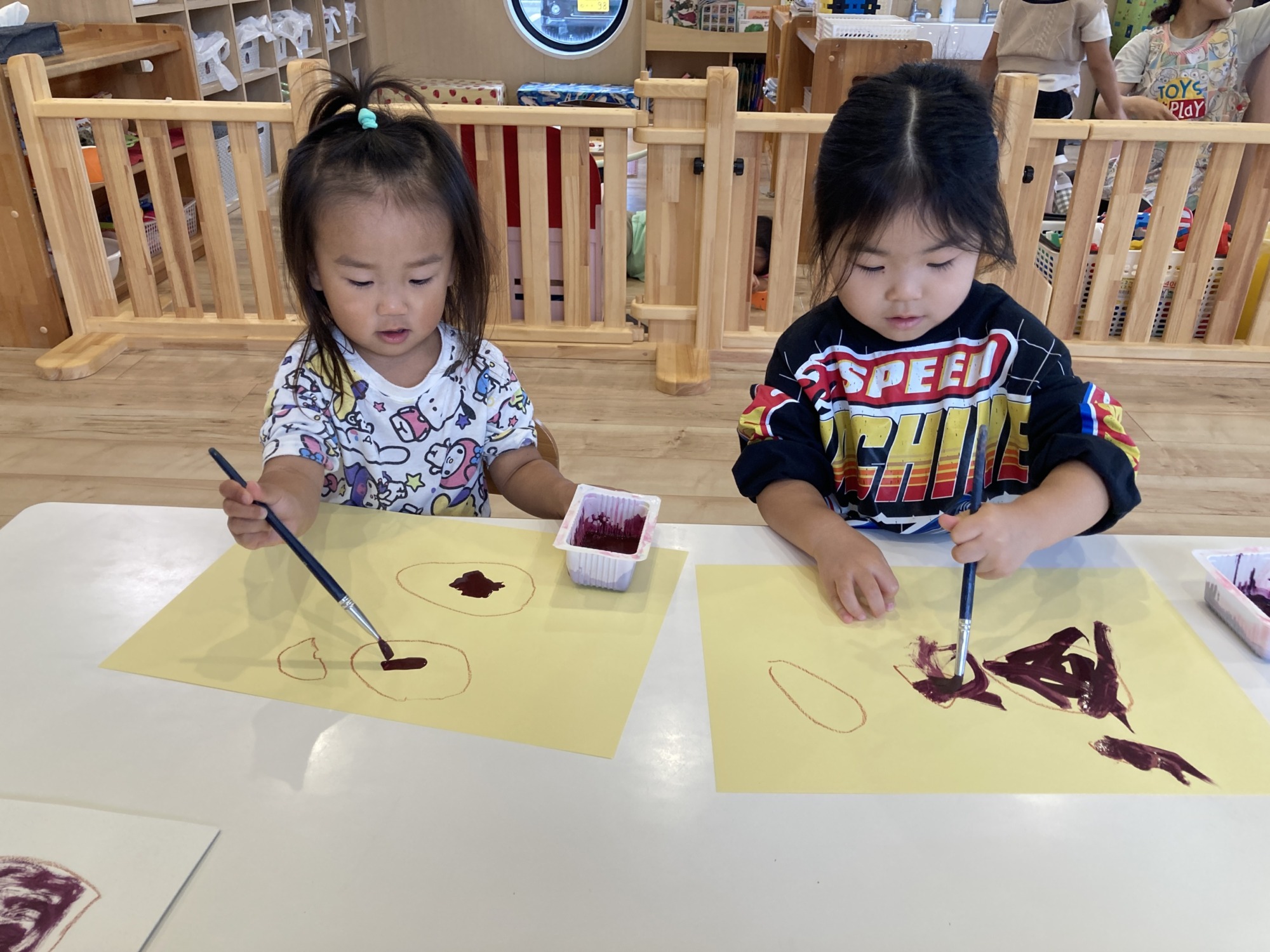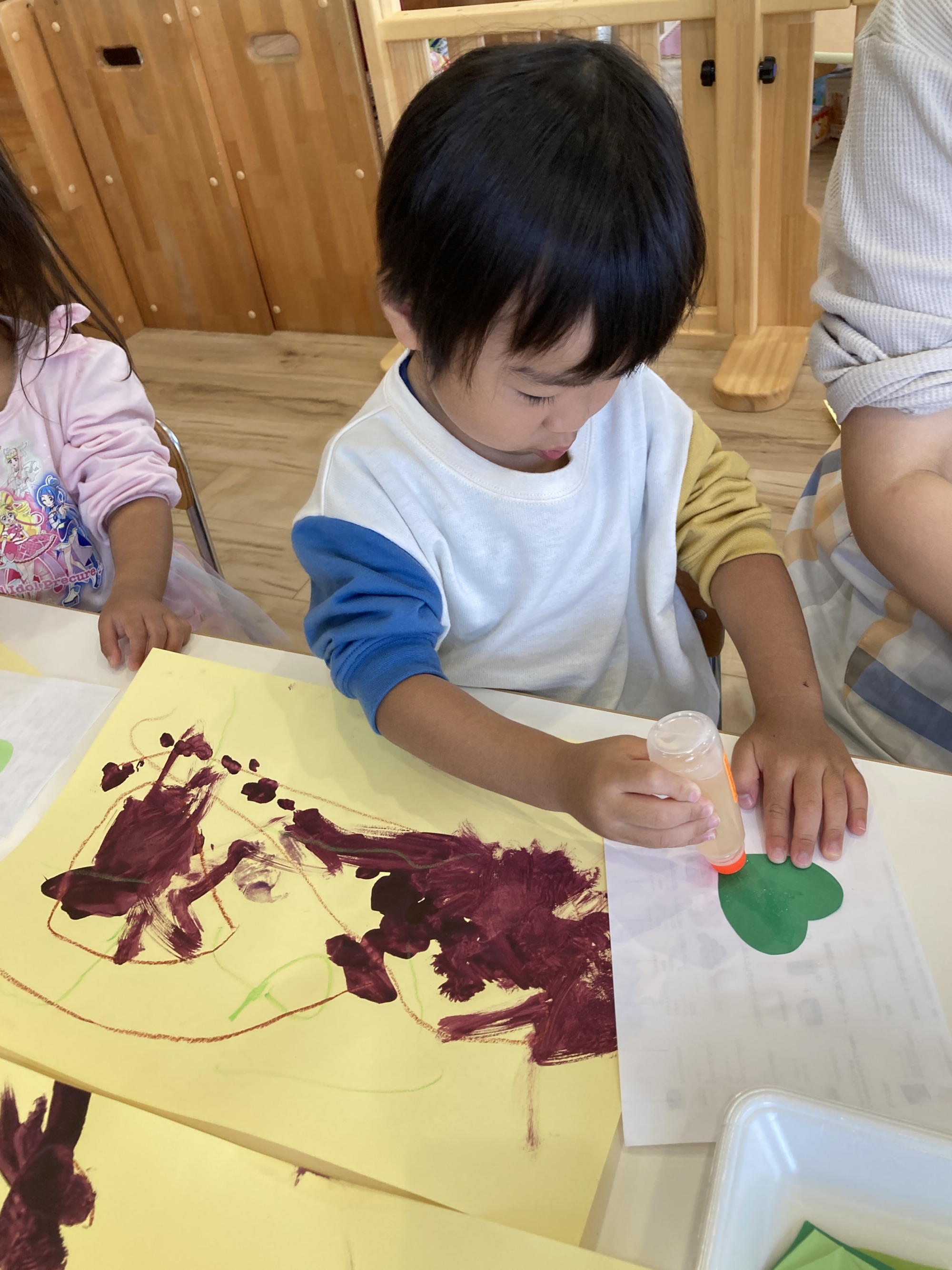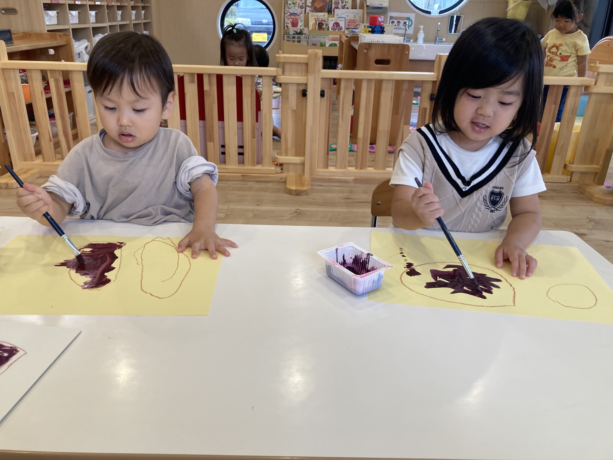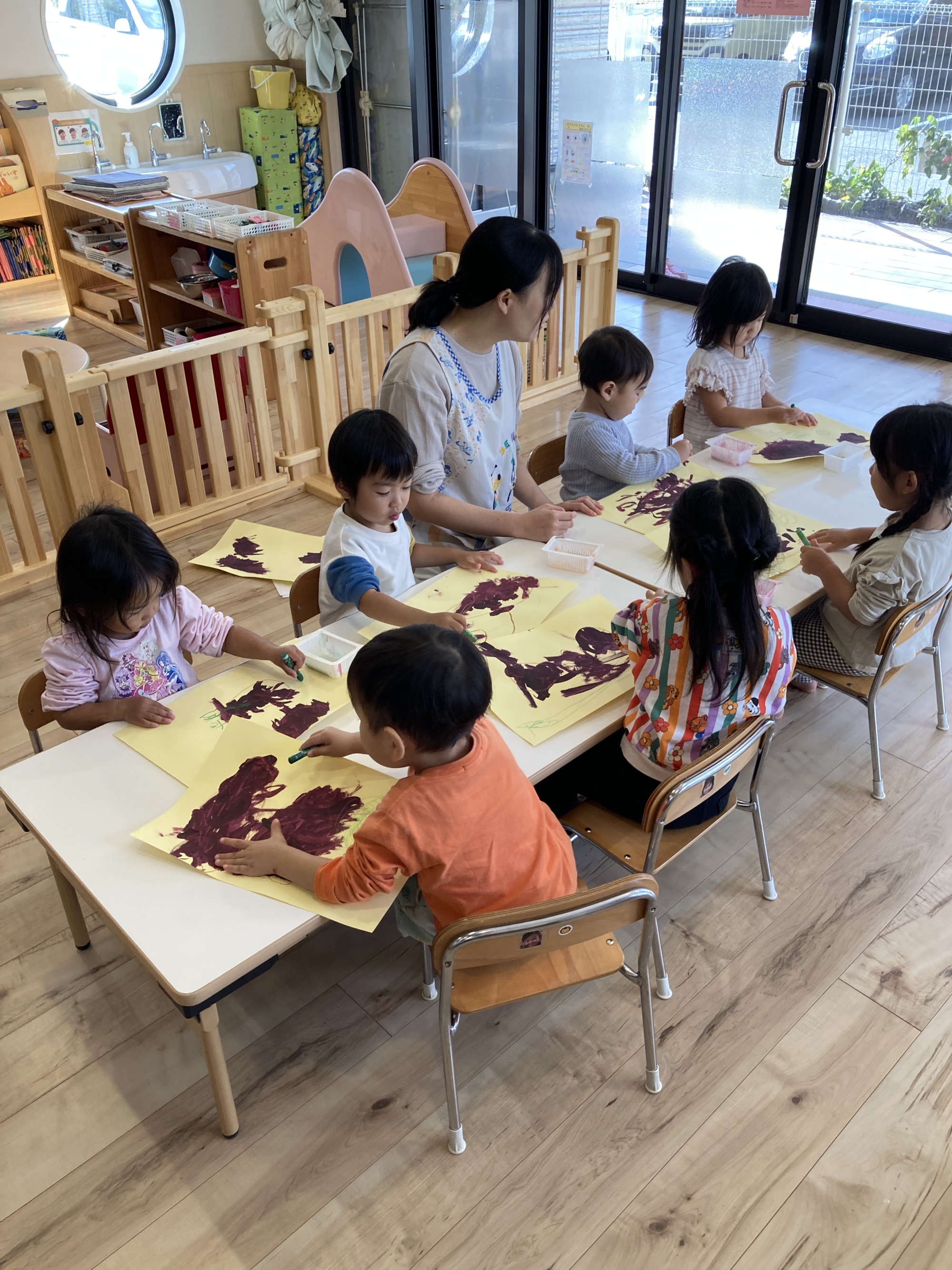 「大きいお芋〜‼︎」「可愛いの〜」と言いながらクレヨンでお芋を描いていましたよ(^^)