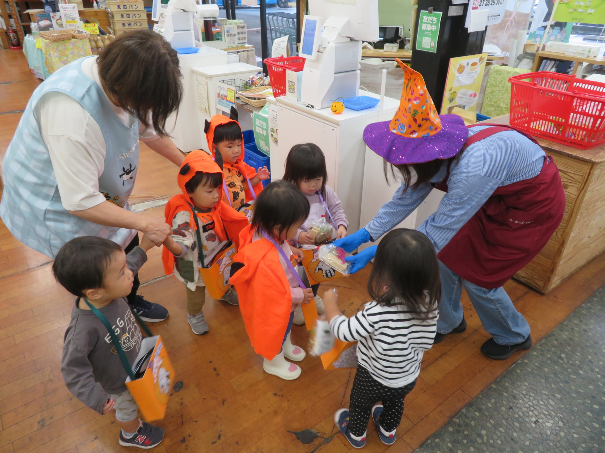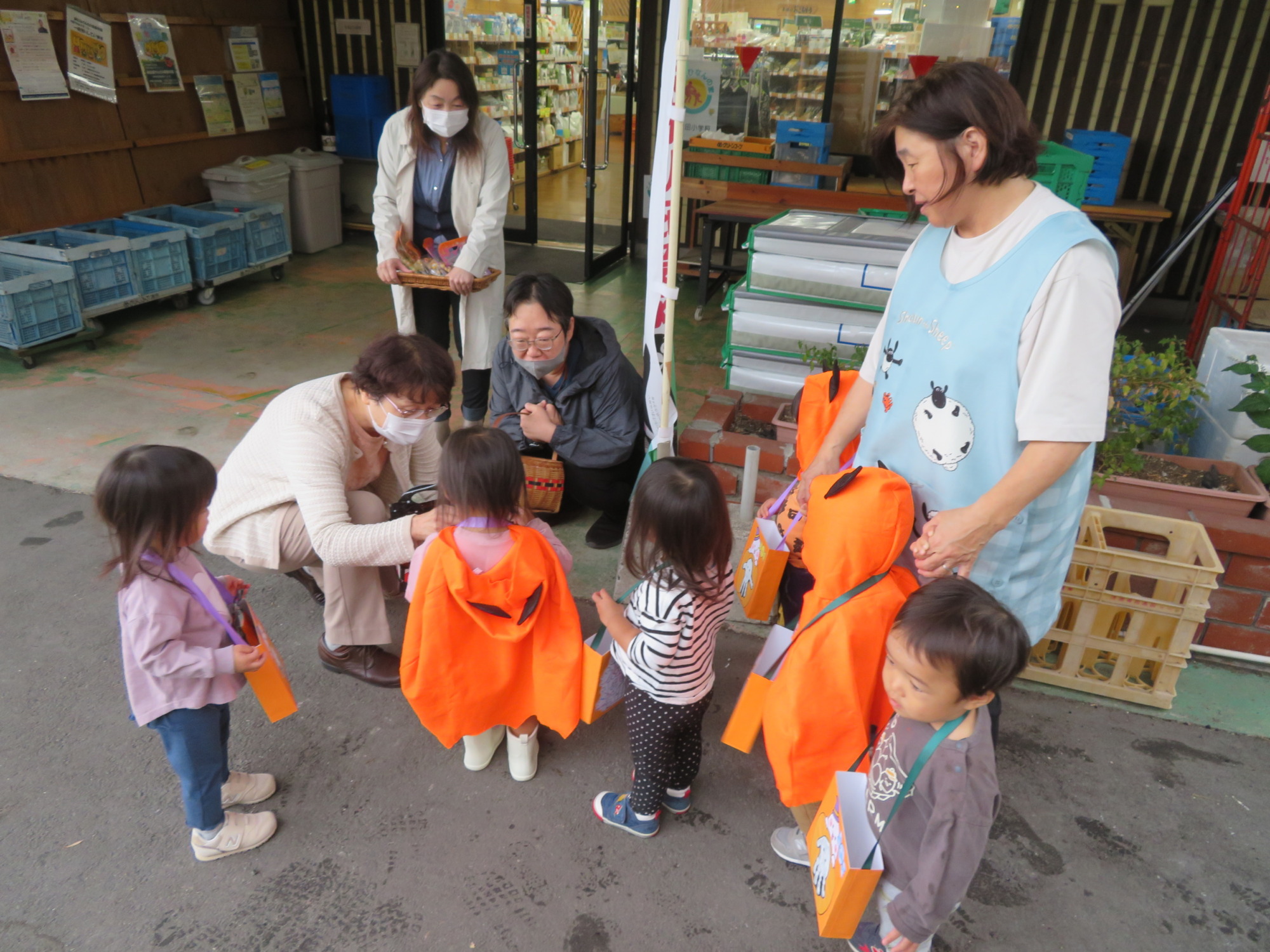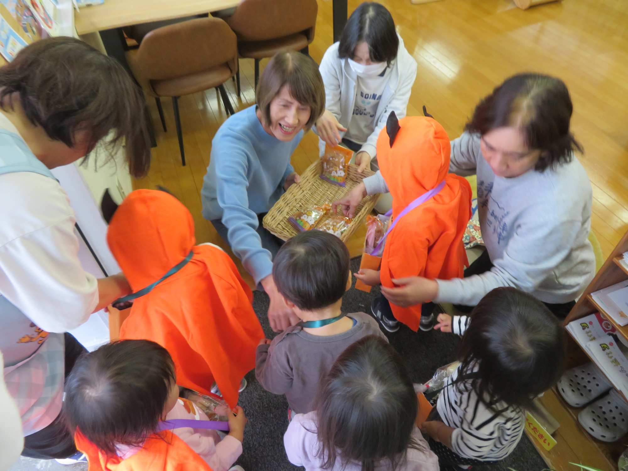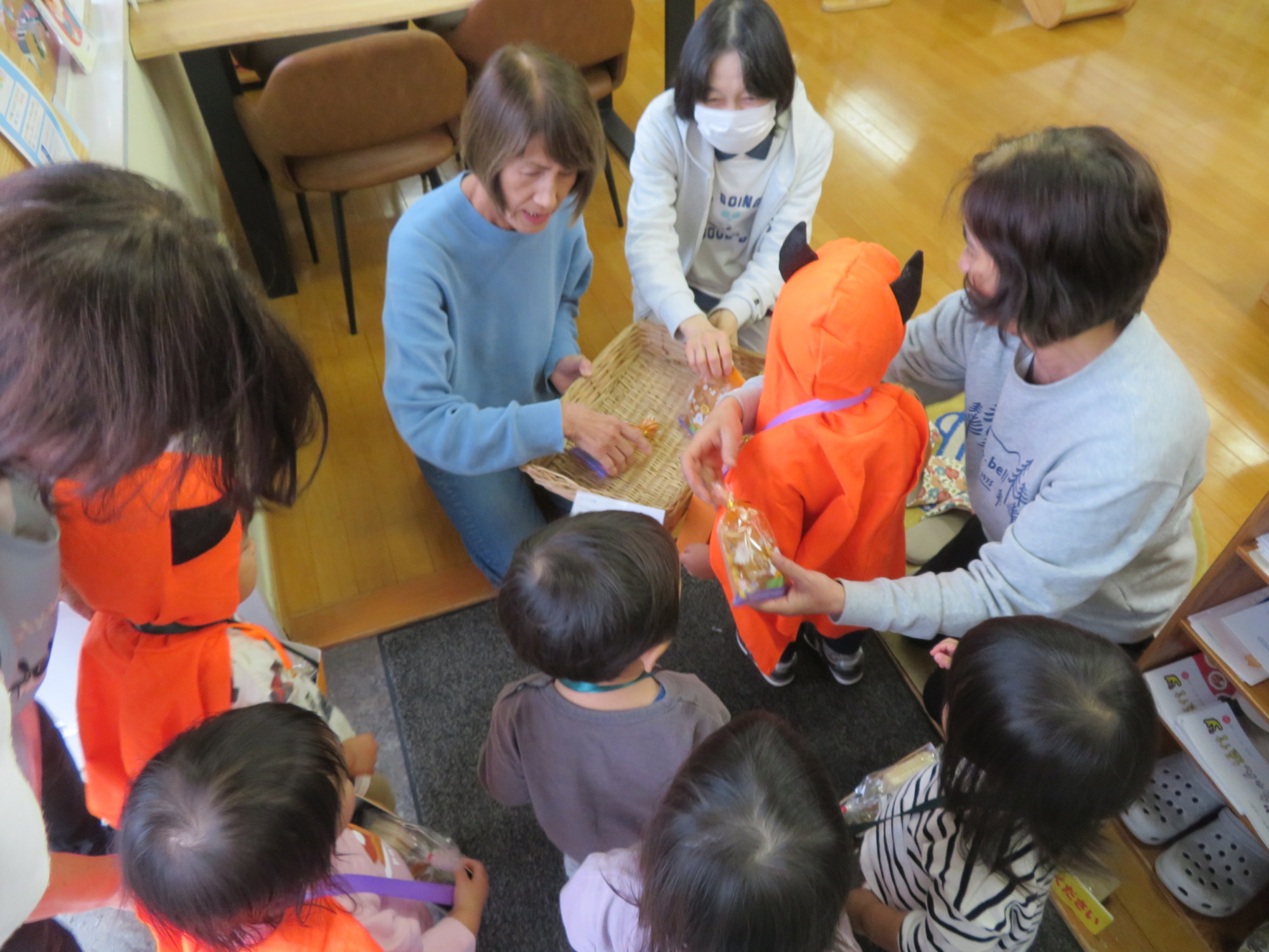 うさぎ組さんは先生と手を繋いでお菓子をもらいに行きました🎶👻