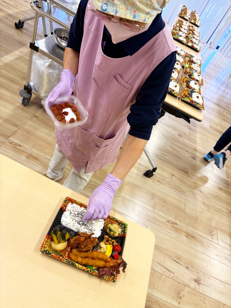 朝7時にお弁当🍱盛りつけ組集合😁!