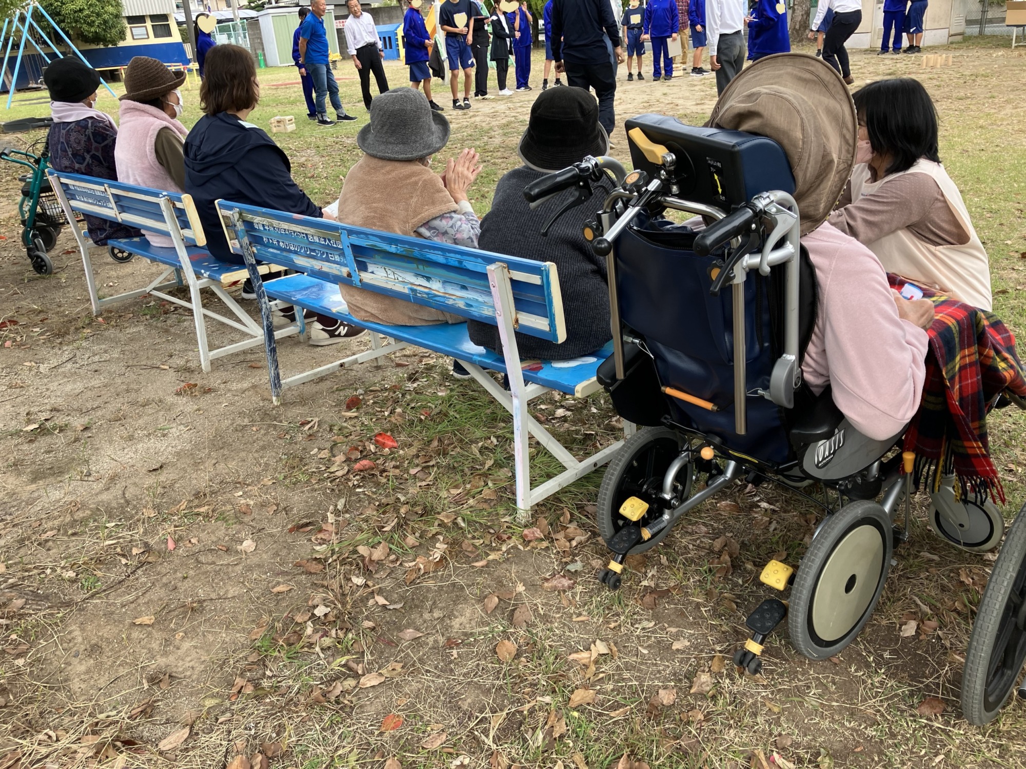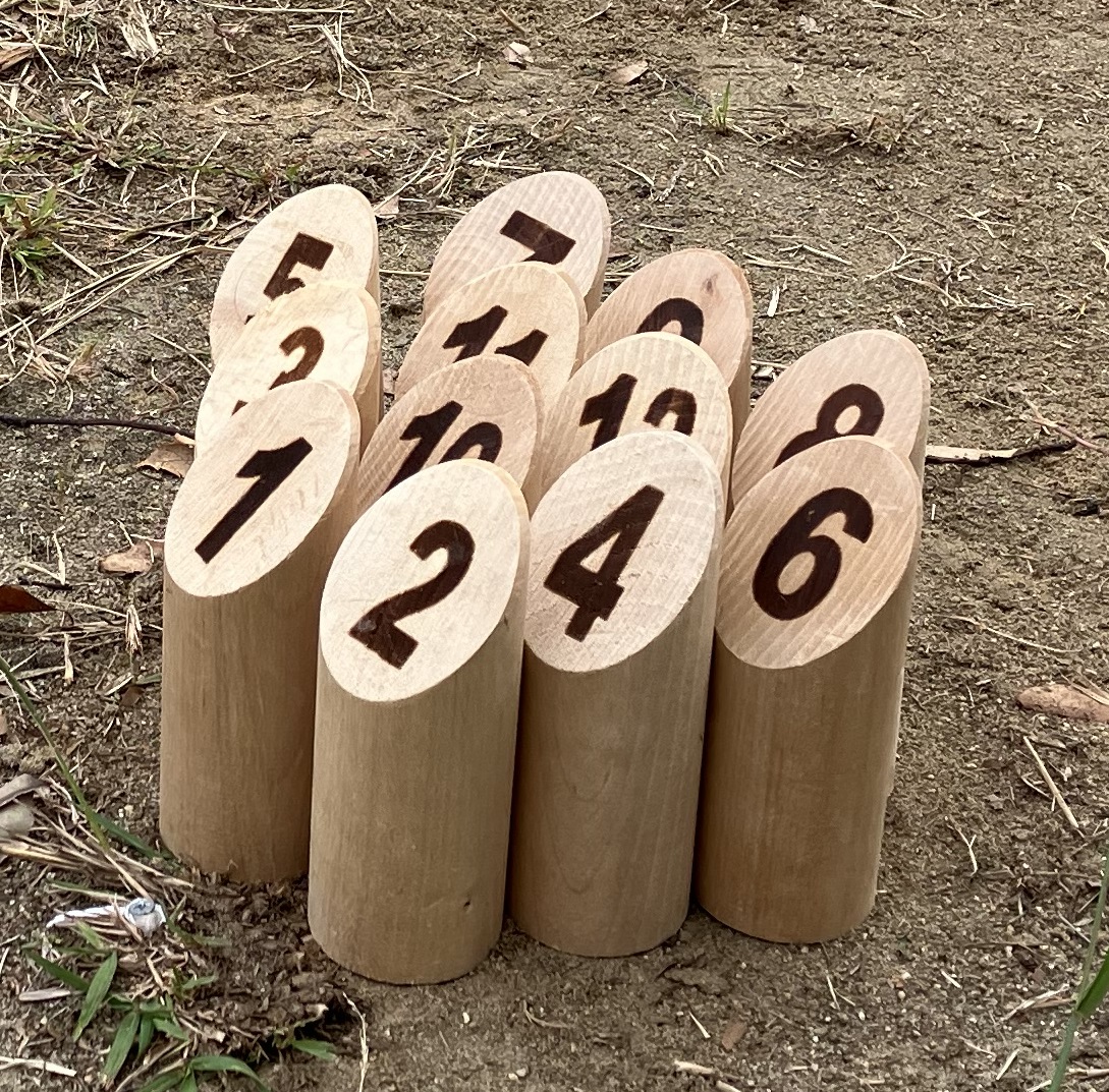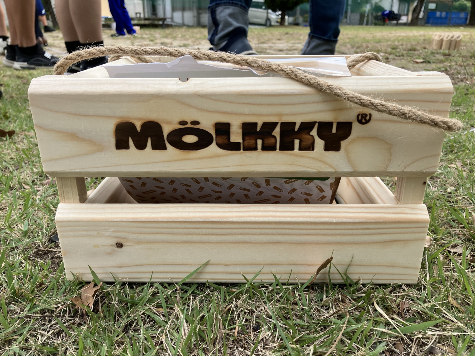 中学生や地域の皆さんがモルックを楽しんでおられ