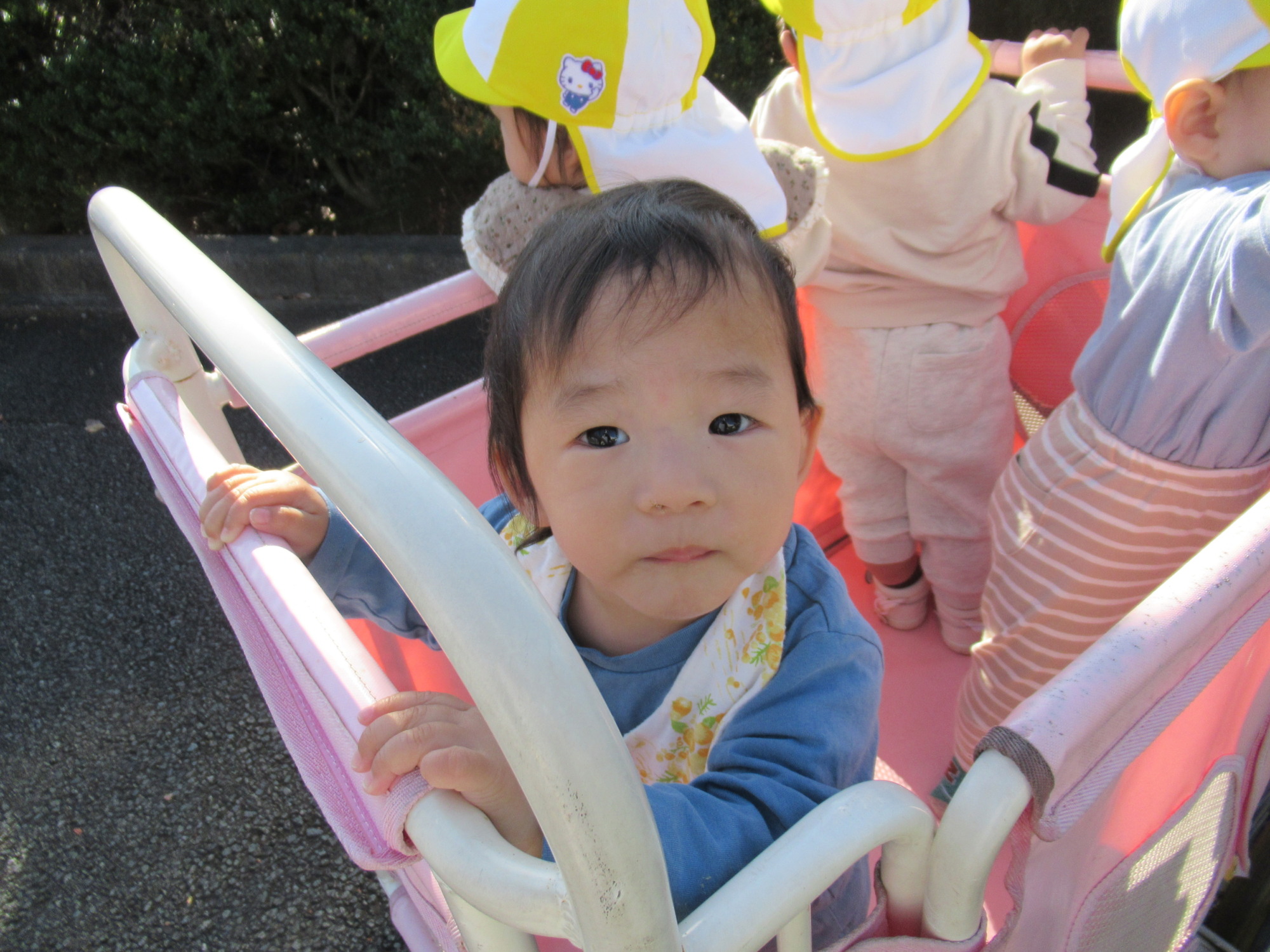 お散歩カートに乗ったり、先生と手を繋いで歩いて行くお友達もいますよ❕