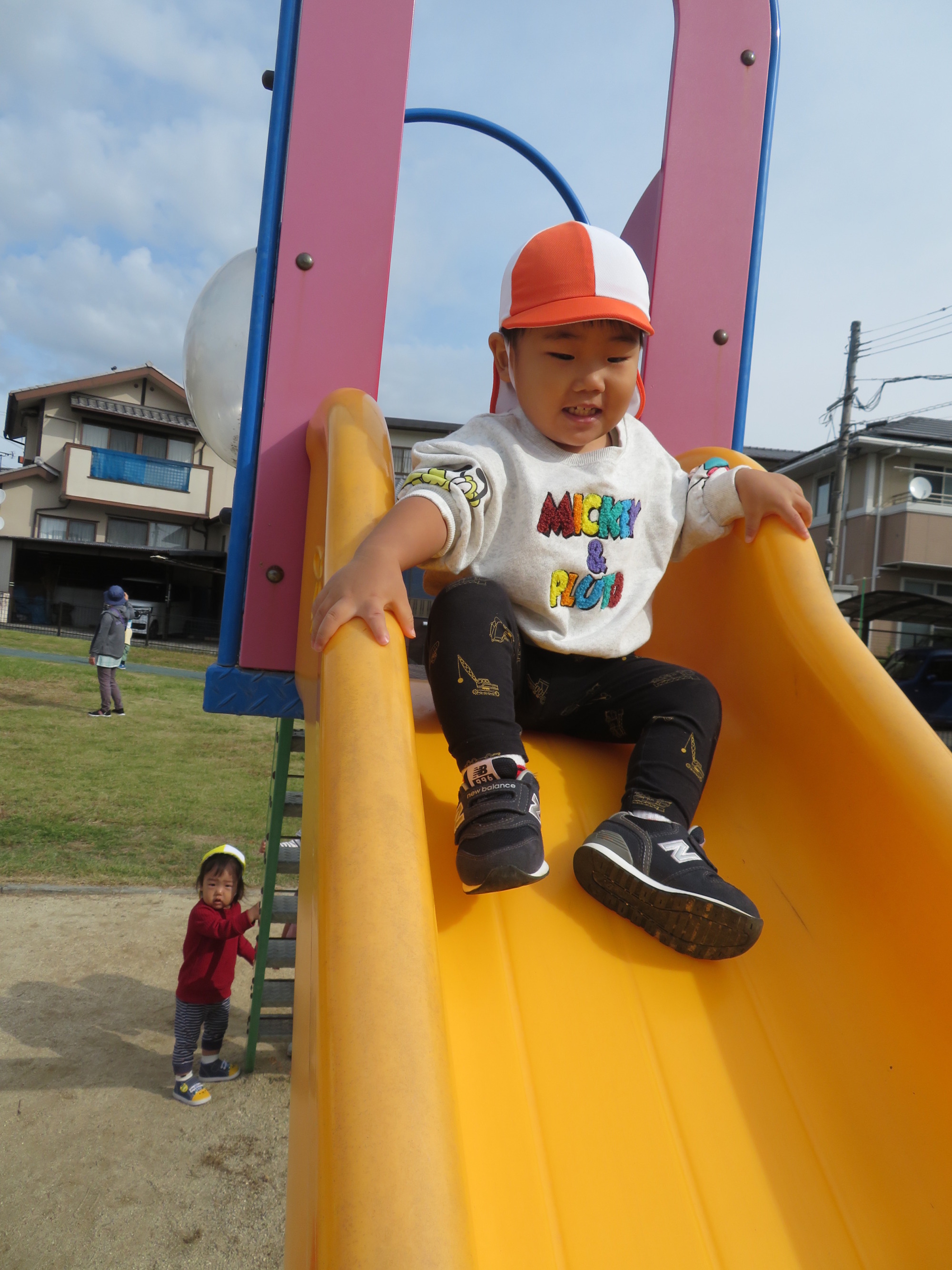 「こわ~い(/ω\)」と言いながらも何回も楽しむ滑り台💕