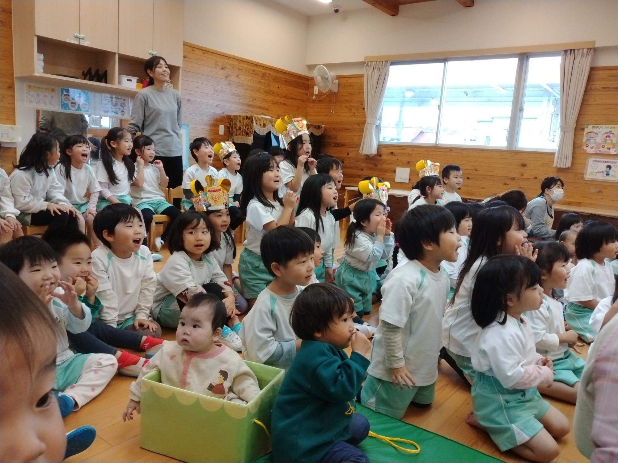 お友達から王冠のプレゼントを貰い嬉しそうな様子の子ども達✨