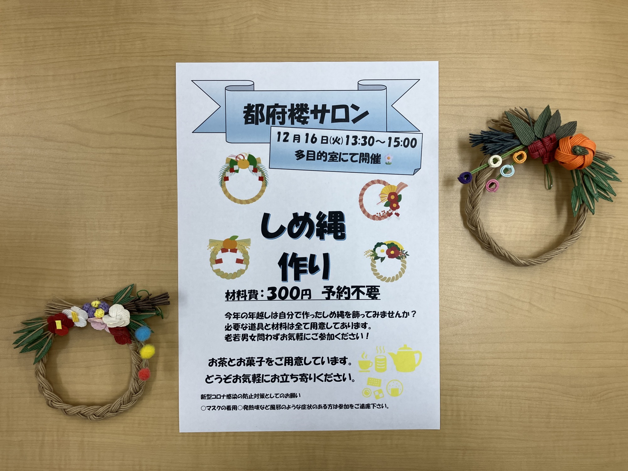 12月16日(火)13:30~15:00 材料費300円 予約不要