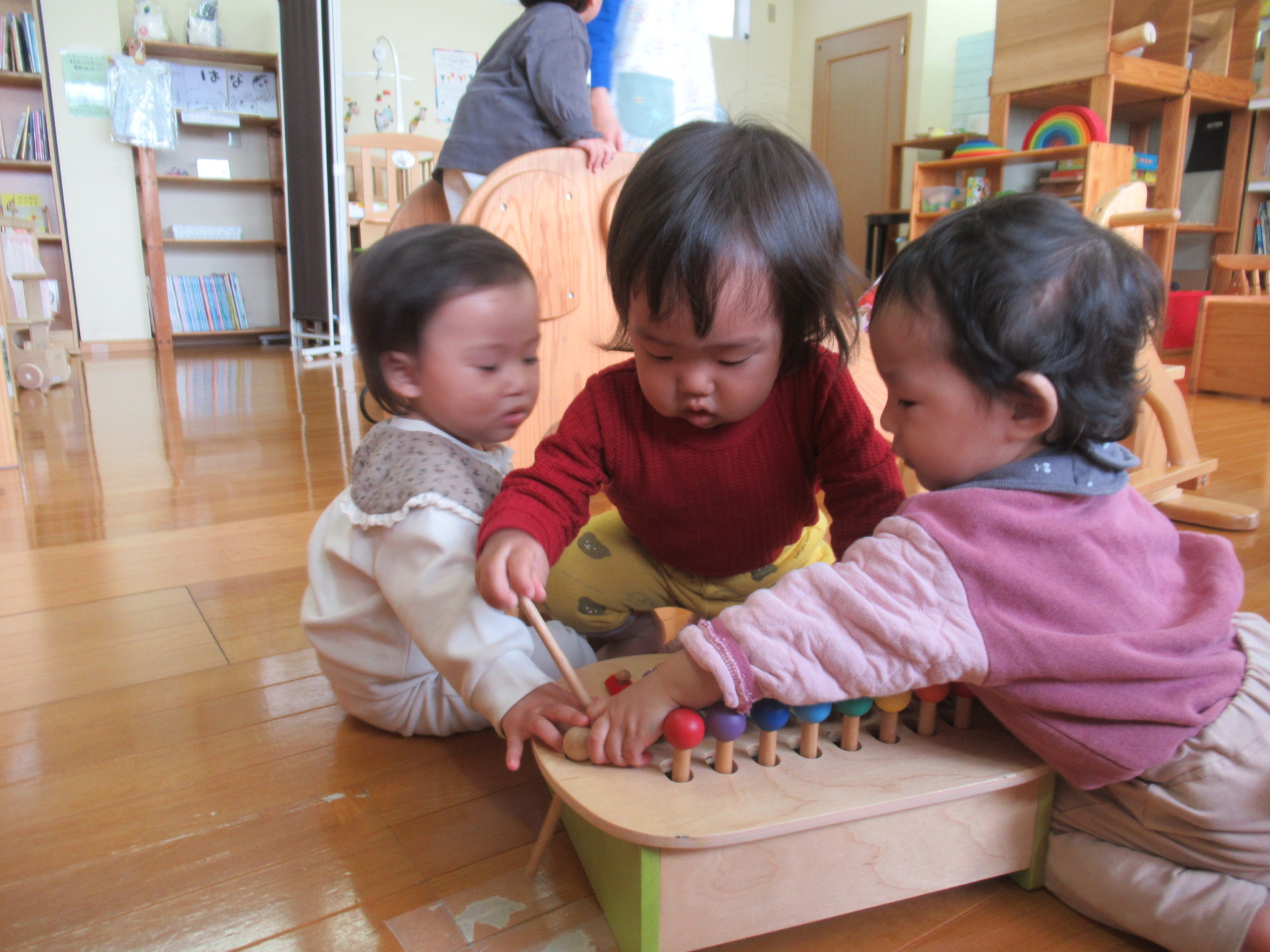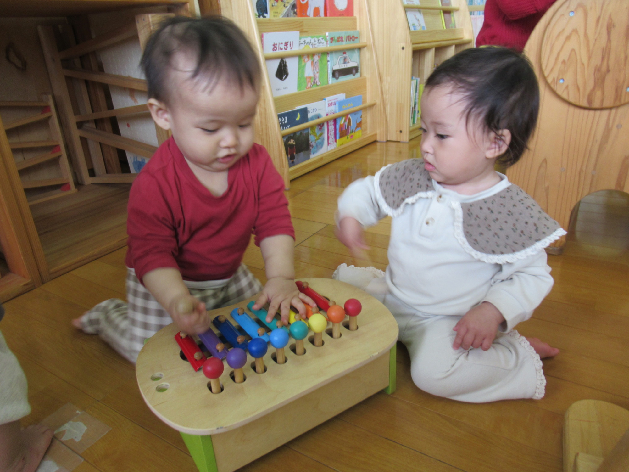 楽しい玩具を見つけては興味津々で遊んでいた子ども達です🎶(≧▽≦)