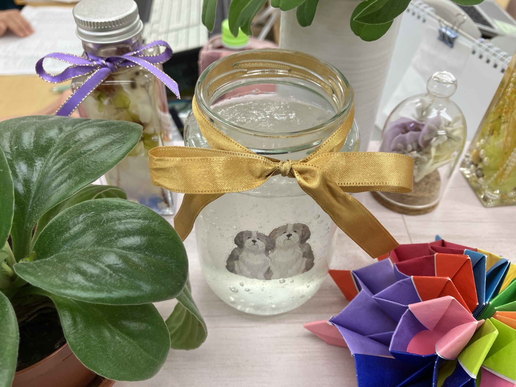 作ると言っても、空き瓶に保冷剤を入れてアロマオイルを入れて混ぜただけですけが(‘◇’)ゞ事務所内に置いています。