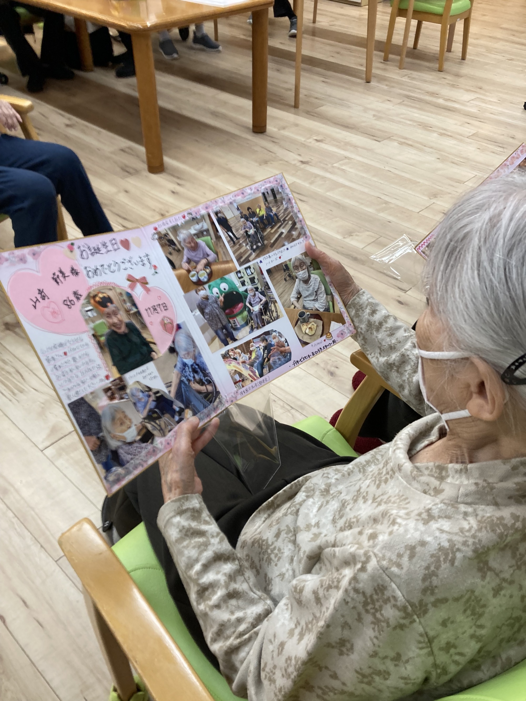 11月は1年で1番お誕生日をお迎えする方が多い月です。ご利用者の皆さんやスタッフからお祝いの言葉を送られると、皆さん照れくさそうにお礼を言っておられました。また、1年元気に過ごしたいねーと皆さんとお話ししました。大塚