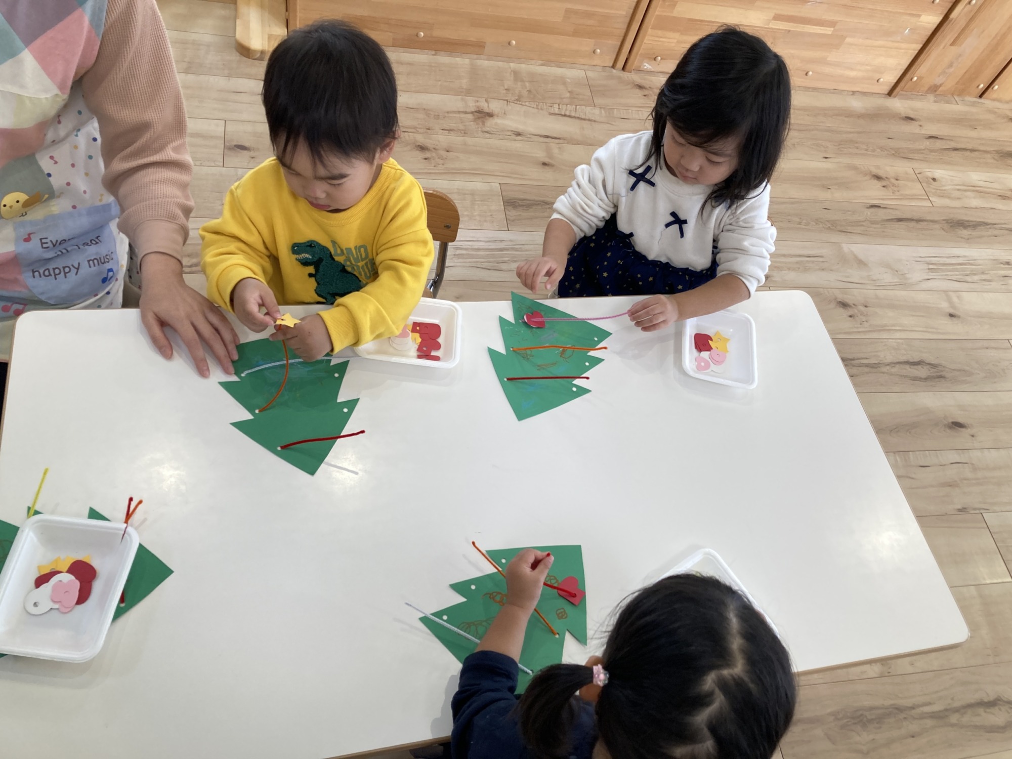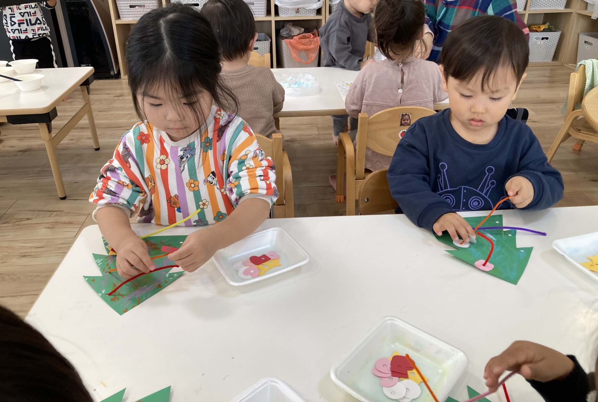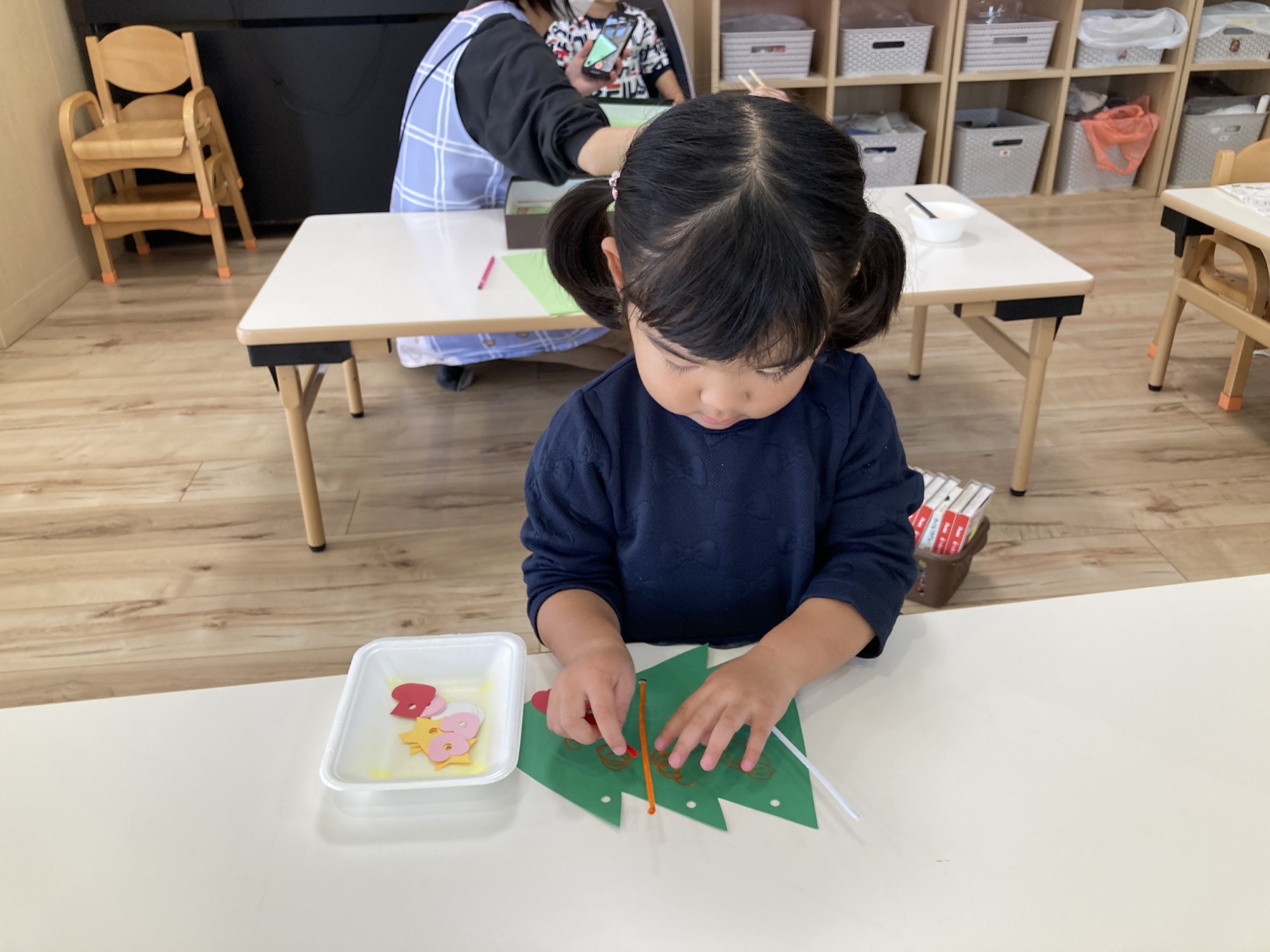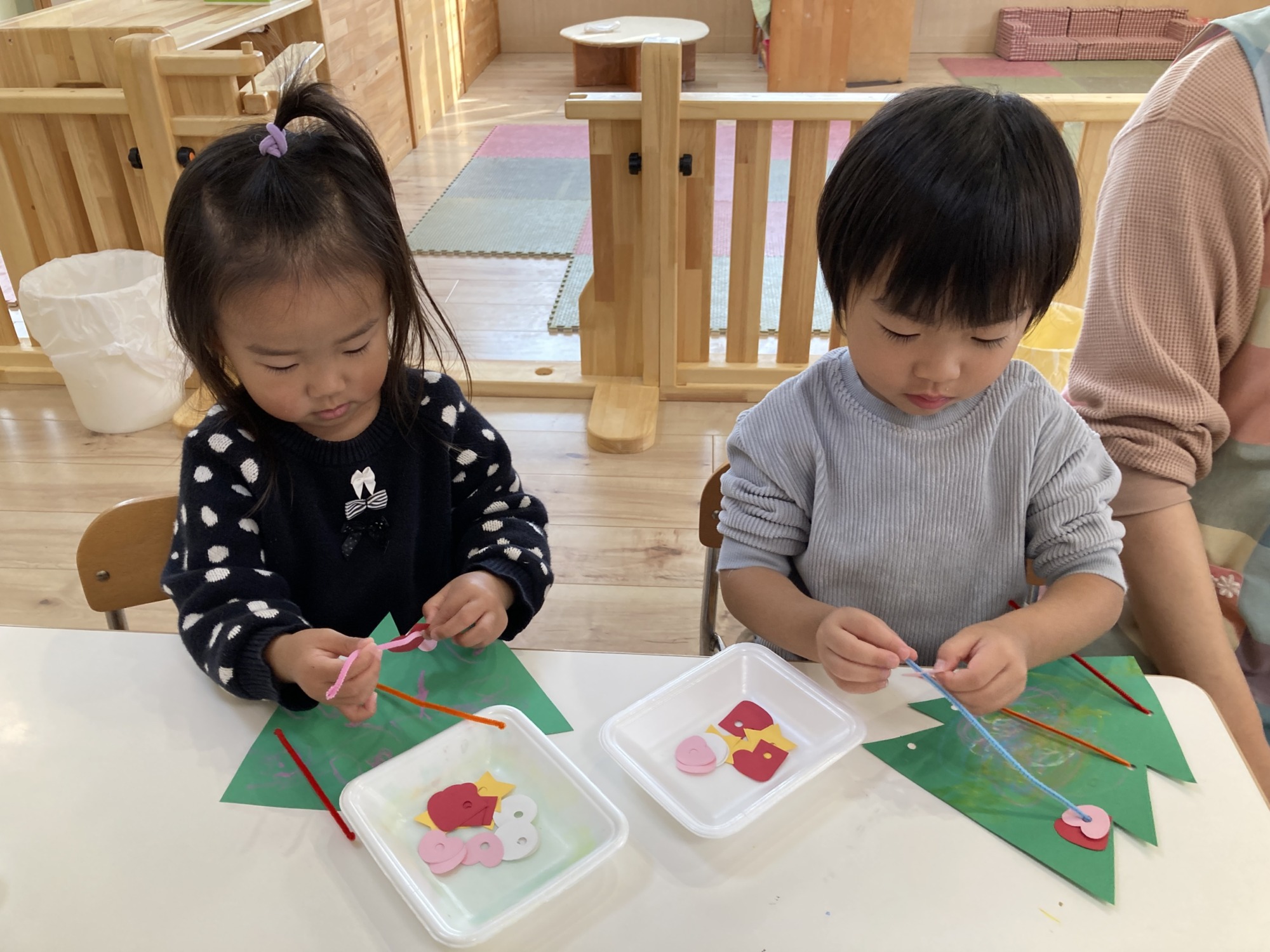 「ツリーだぁ♡」「お家にもある‼︎」と嬉しそうに作り始めたお友達‼︎