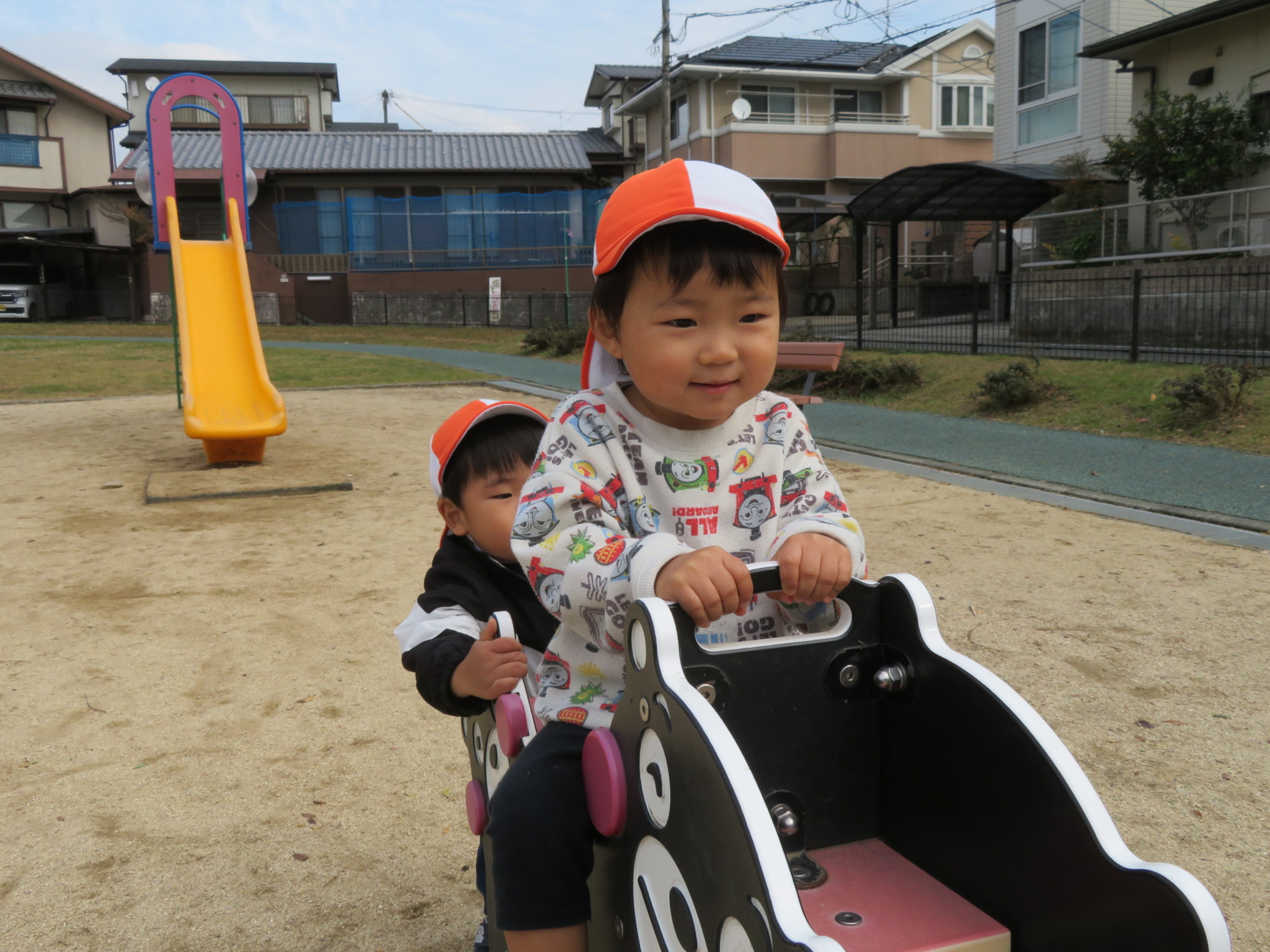 スプリング遊具、お友達に揺らしもらって