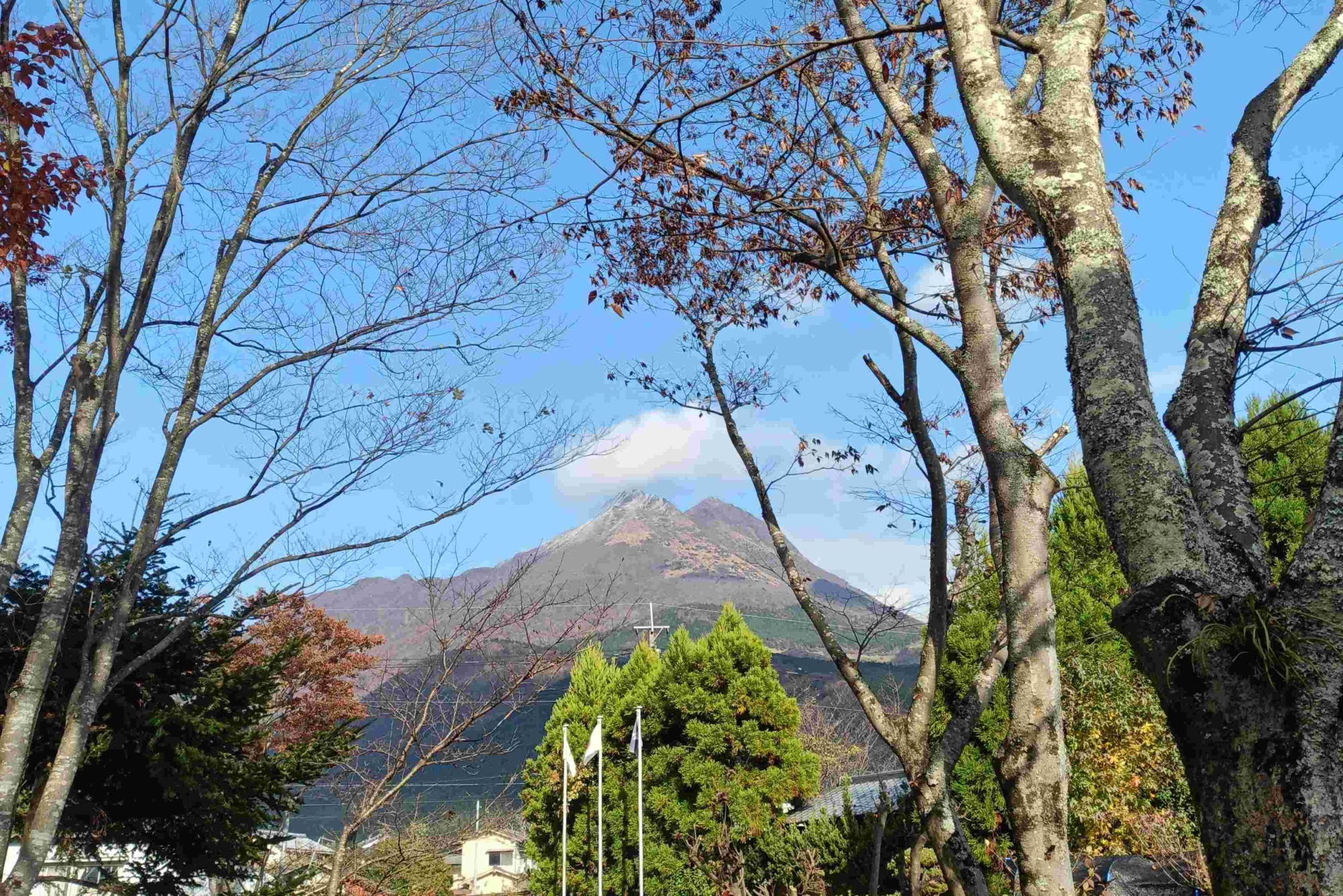 由布岳の頂上も白くなりました。