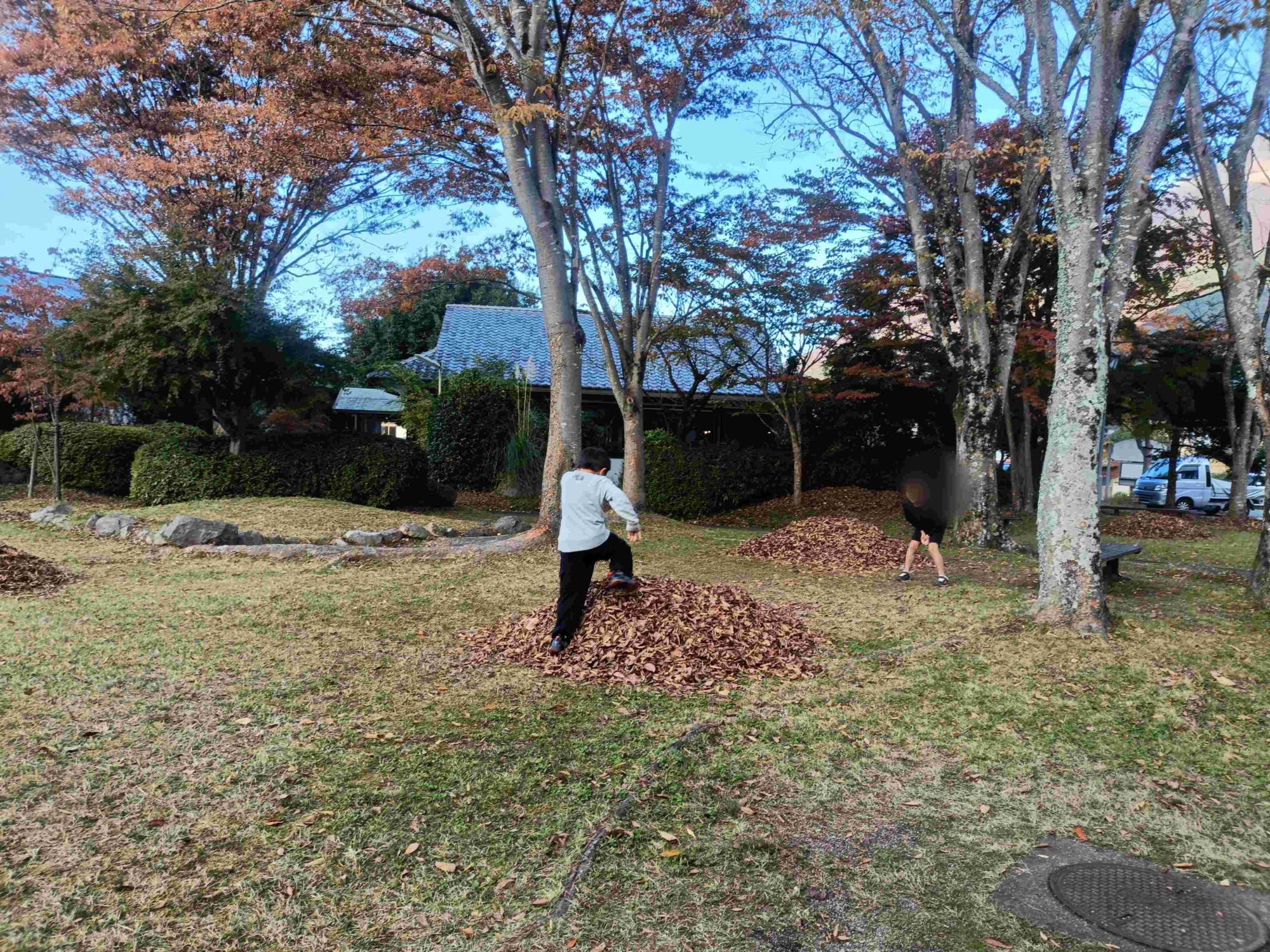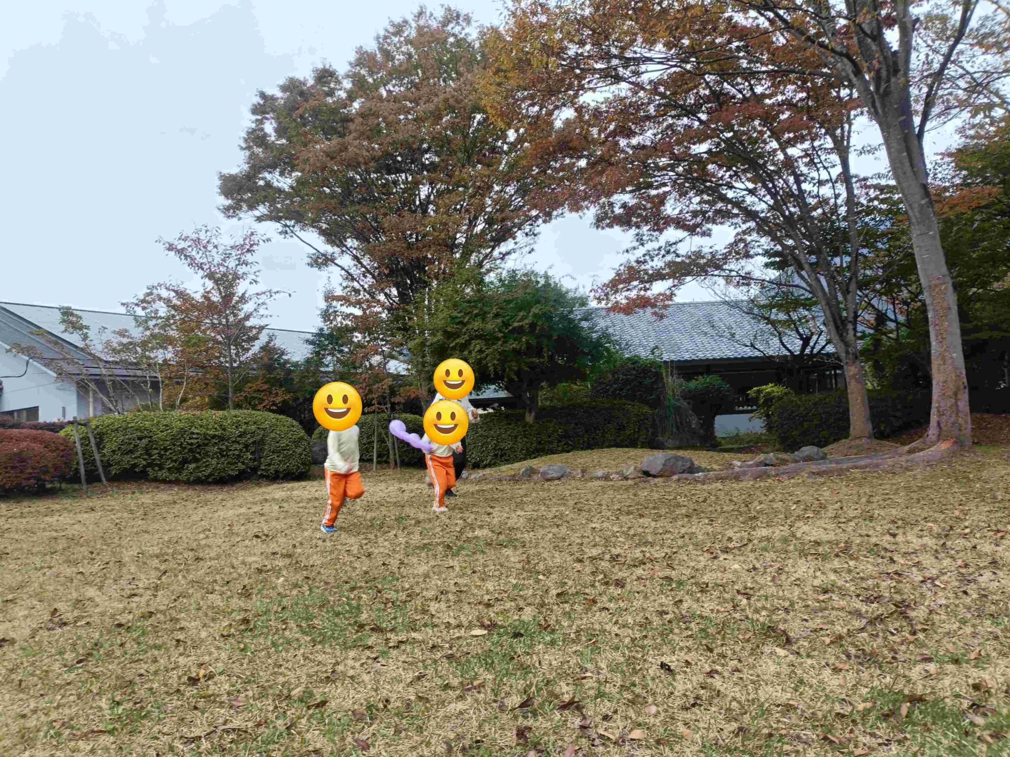 屋外では紅葉がきれいな中庭で遊びました。