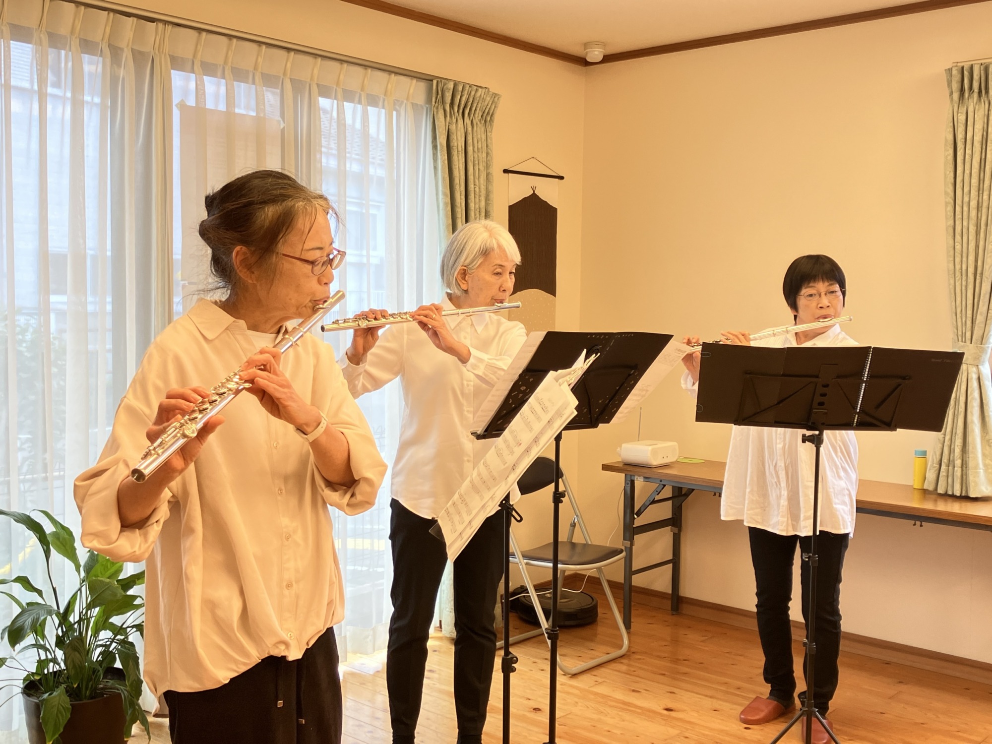 ゆうゆうのワーカーのYさん、デイサービスのワーカーのYさん、ご友人の三人で【プルニエ】というグループ名で活動をされています。