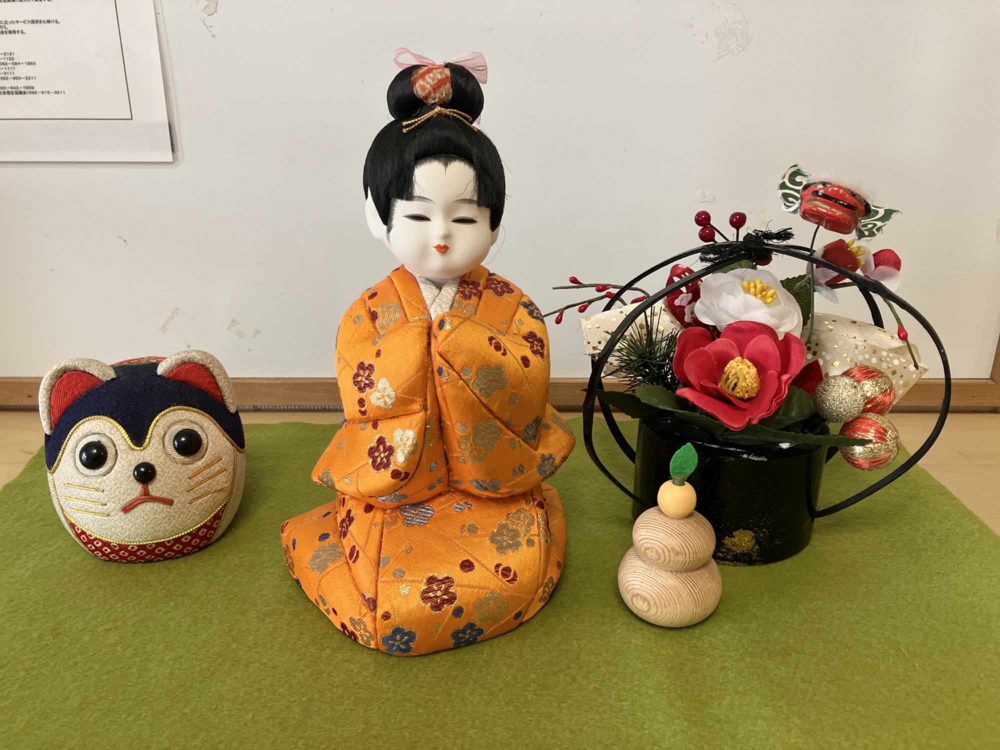 ↑写真中央の愛らしい人形は、ご高齢の方が作られているものを譲っていただきました。