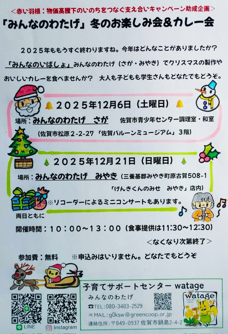 <日時>R7.12/6(土) 10:00〜13:00(食事提供11:30〜12:30 無くなり次第終了)