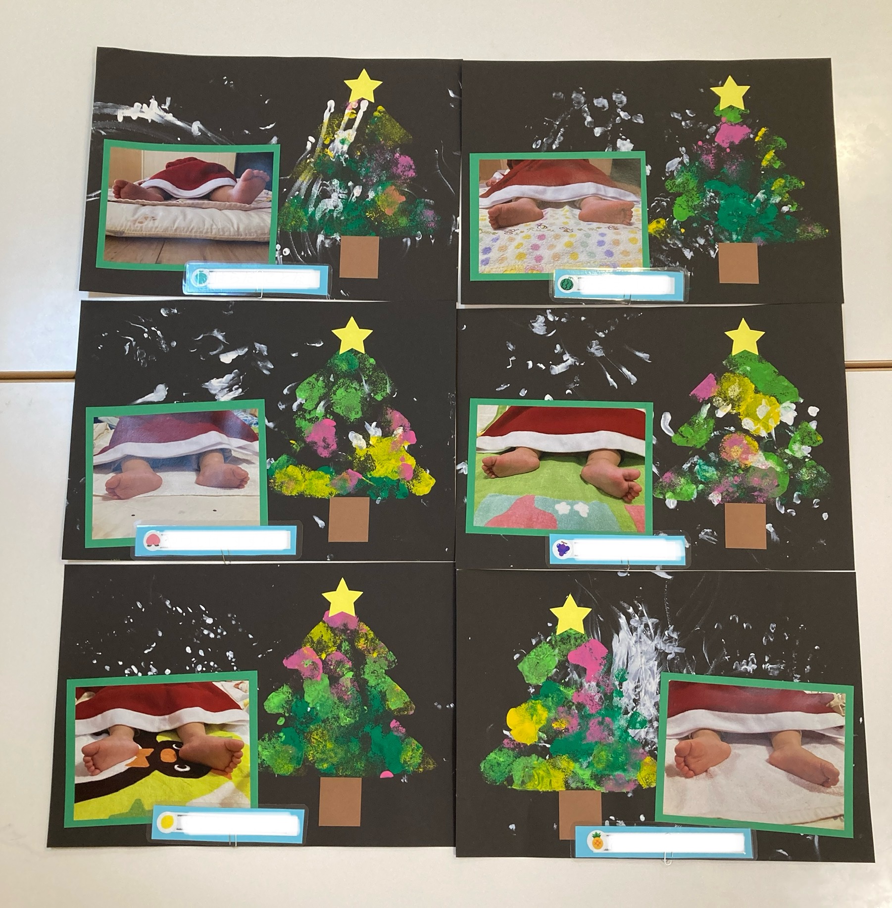 絵の具を使って、指スタンプやタンポでクリスマスの製作をしました☆