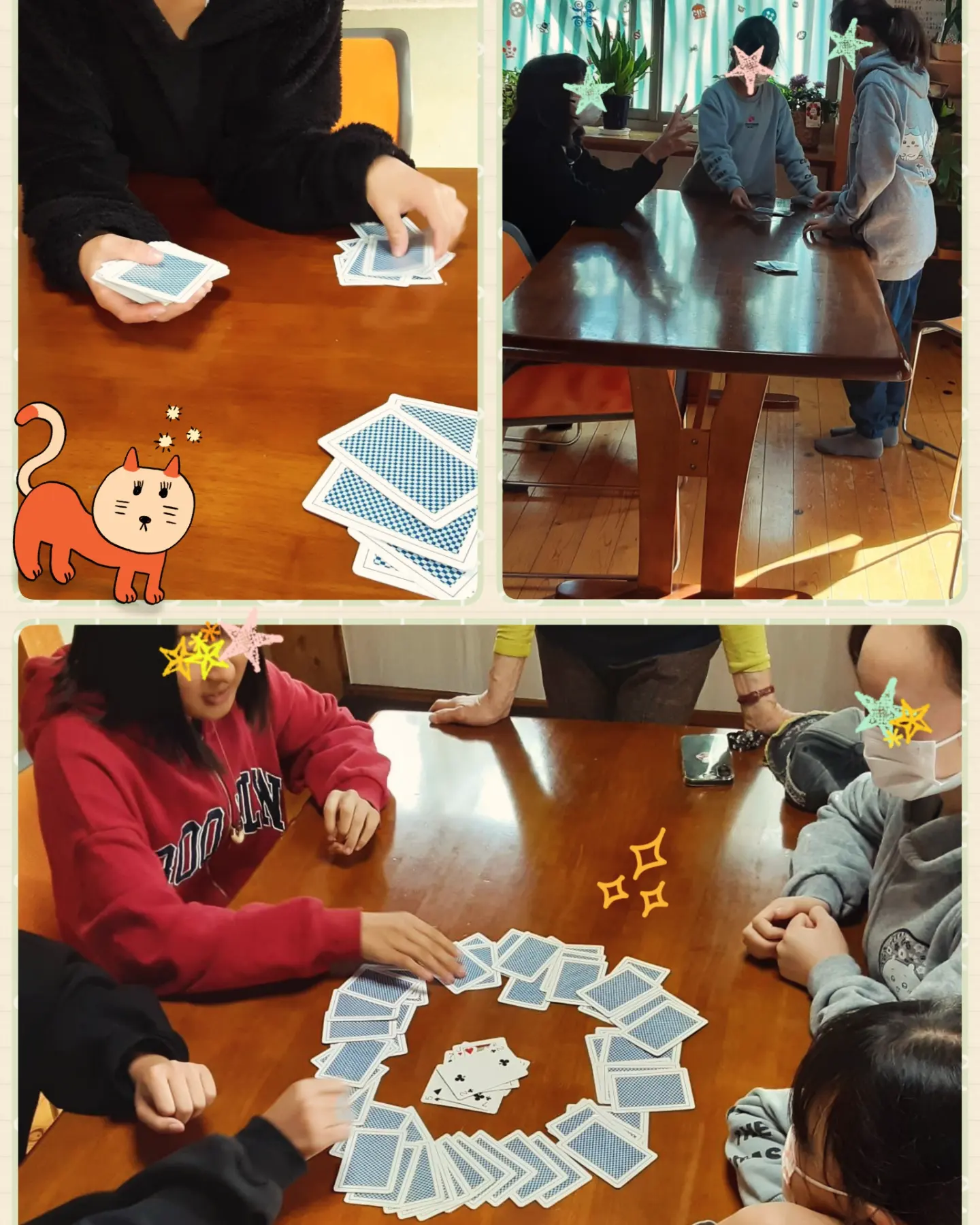 今日は人数も少なくトランプやおしゃべりでゆったり過ごしていましたよ。
