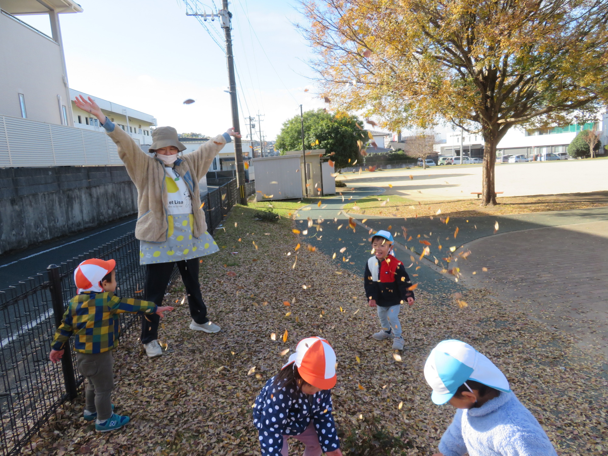 みんな集まって葉っぱのかさかさと鳴る音を楽しんでいます🎶