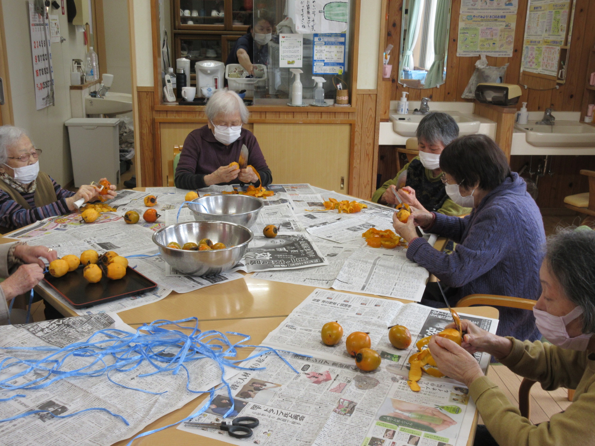 渋柿をいただいたので、皆で干し柿作りを行いました。
