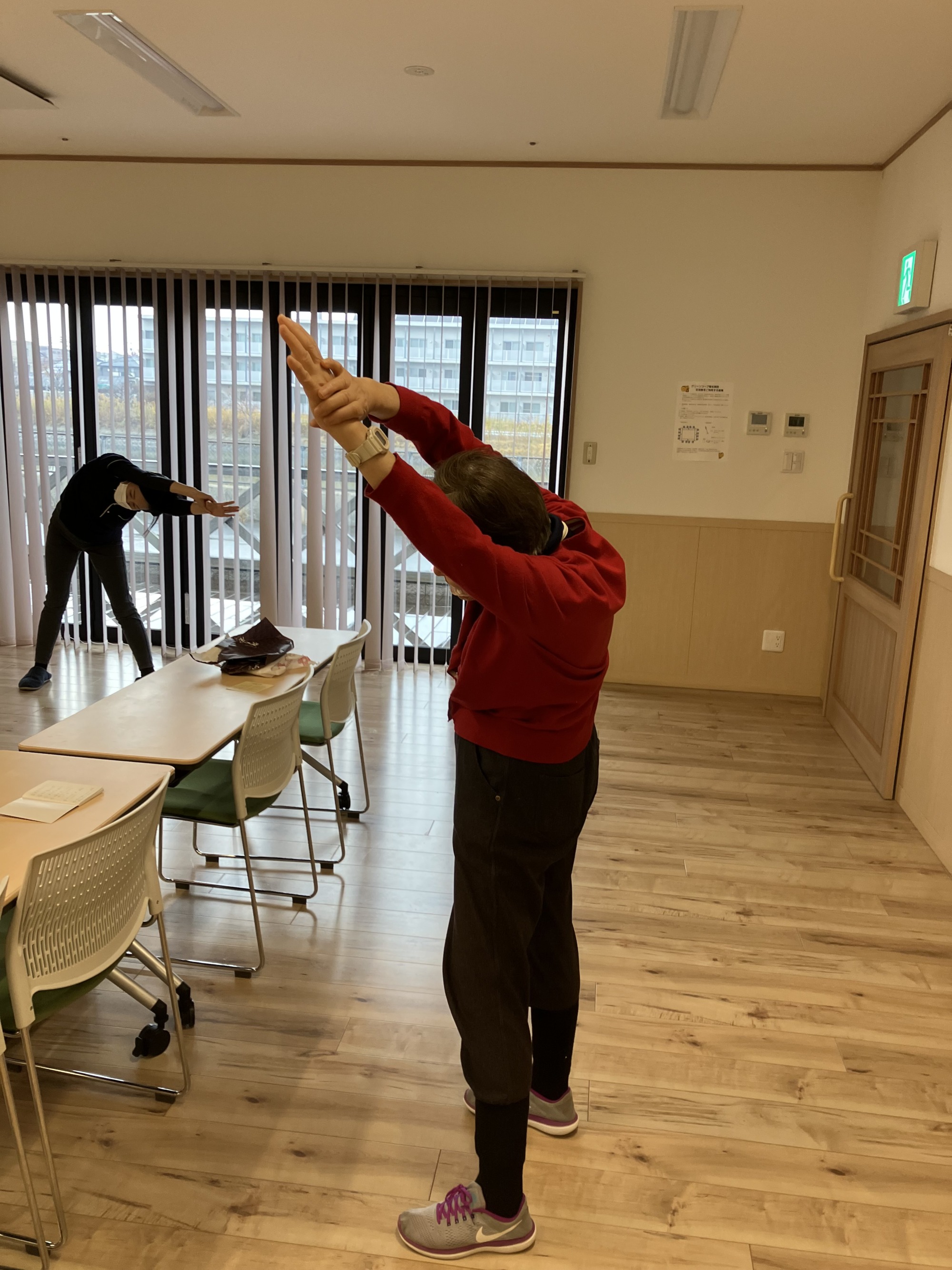 毎年、12月の職場会議ではワーカーさんが先生となって腰痛体操を行なっています。